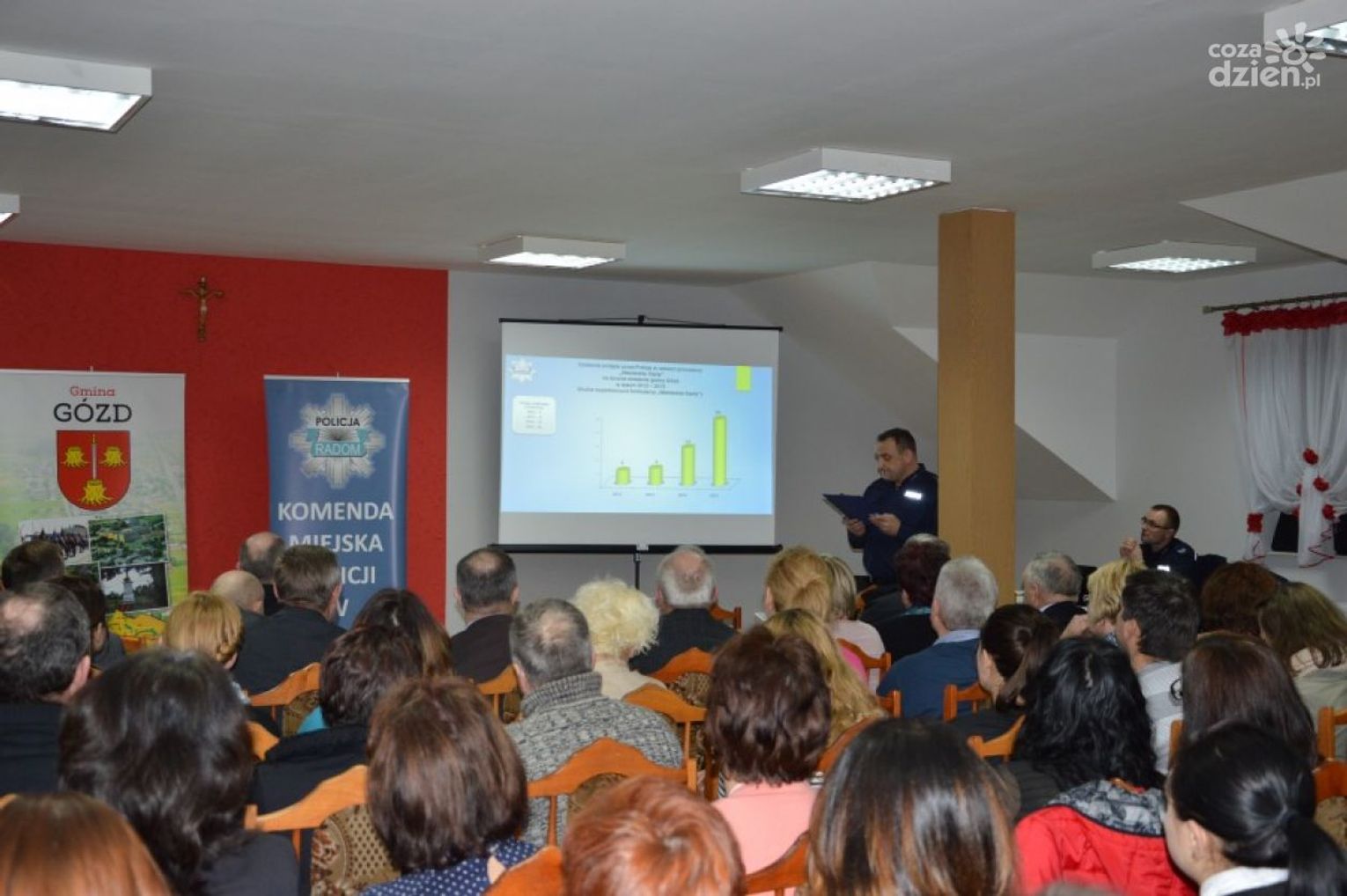 Przedstawiono m.in. stan bezpieczeństwa na terenie gminy Gózd. Następnie mieszkańcy i zaproszeni goście zadawali pytania przedstawicielom policji. Poruszano kwestie m.in. utworzenia na terenie gminy posterunku policji, kontrolach w okolicach szkół, o spożywaniu alkoholu w miejscach publicznych, a także o zagrożeniach jakie niosą dopalacze.