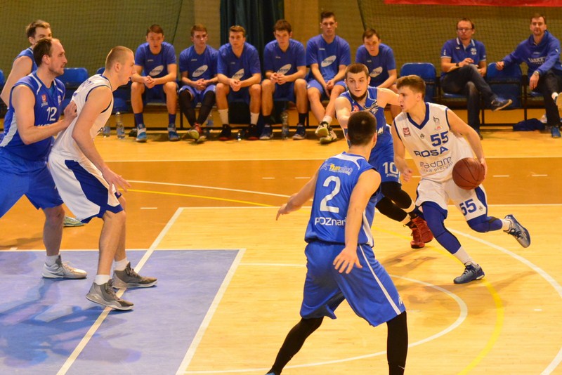 Spotkanie "o wszystko" w I lidze lepiej rozpoczęli gospodarze. Po trzech minutach gry mieli na swoim koncie już kilka udanych kontrataków, co pozwoliło im prowadzić 10:5. Filip Zegzuła był świetnie dysponowany i tylko w pierwszej kwarcie rzucił trzy "trójki". Poznaniacy nie mogli za to przełamać defensywy Rosy i w sumie zdobyli w niej tylko 10 "oczek", przy 24 punktach radomian. Drugą odsłonę od serii 0:7 rozpoczęli goście, a chwilę potem zaczął się ich festiwal czterech z rzędu udanych rzutów z dystansu. Strata do Rosy stopniowo zmniejszała się, a tuż przed przerwą na tablicy ukazał się wynik 43:36.