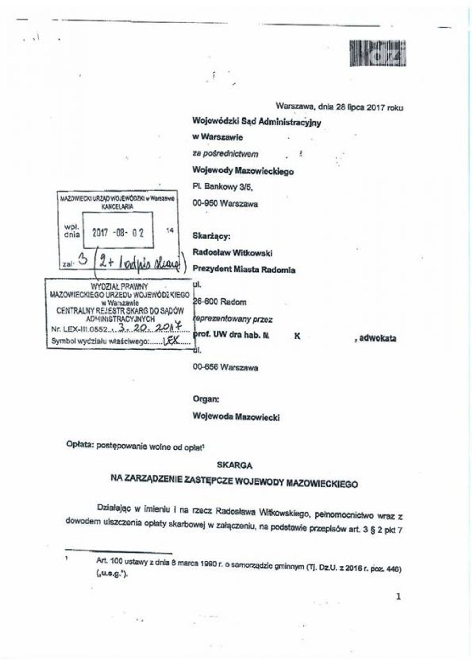 Treść skargi na zarządzenie zastępcze wojewody i odpowiedź na nią dokumentów dostępna na fanpage Radomski Skaner Obywatelski. Aby przejść, kliknij TUTAJ.