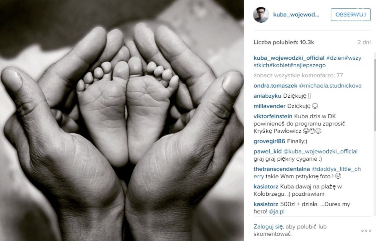 Kuba Wojewódzki w Dzień Kobiet na swoim profilu na Instagramie opublikował zdjęcie przedstawiające stopy dziecka w dłoniach mężczyzny. Na reakcję fanów nie trzeba było długo czekać. – Czyżbyś został ojcem? – pytali internauci.