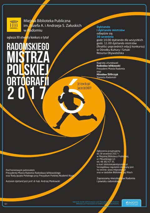 Tekst dyktanda przygotował i tradycyjnie już podyktuje prof. Andrzej Markowski. Do zmagań ortograficznych o tytuł mistrza mogą zgłaszać się wszyscy mieszkańcy Radomia i powiatu radomskiego. Zgłoszenia należy składać osobiście w Miejskiej Bibliotece Publicznej, ul. Piłsudskiego 12 lub elektronicznie na adres: biblioteka[at]mbpradom.pl), podając imię, nazwisko, adres i numer telefonu.