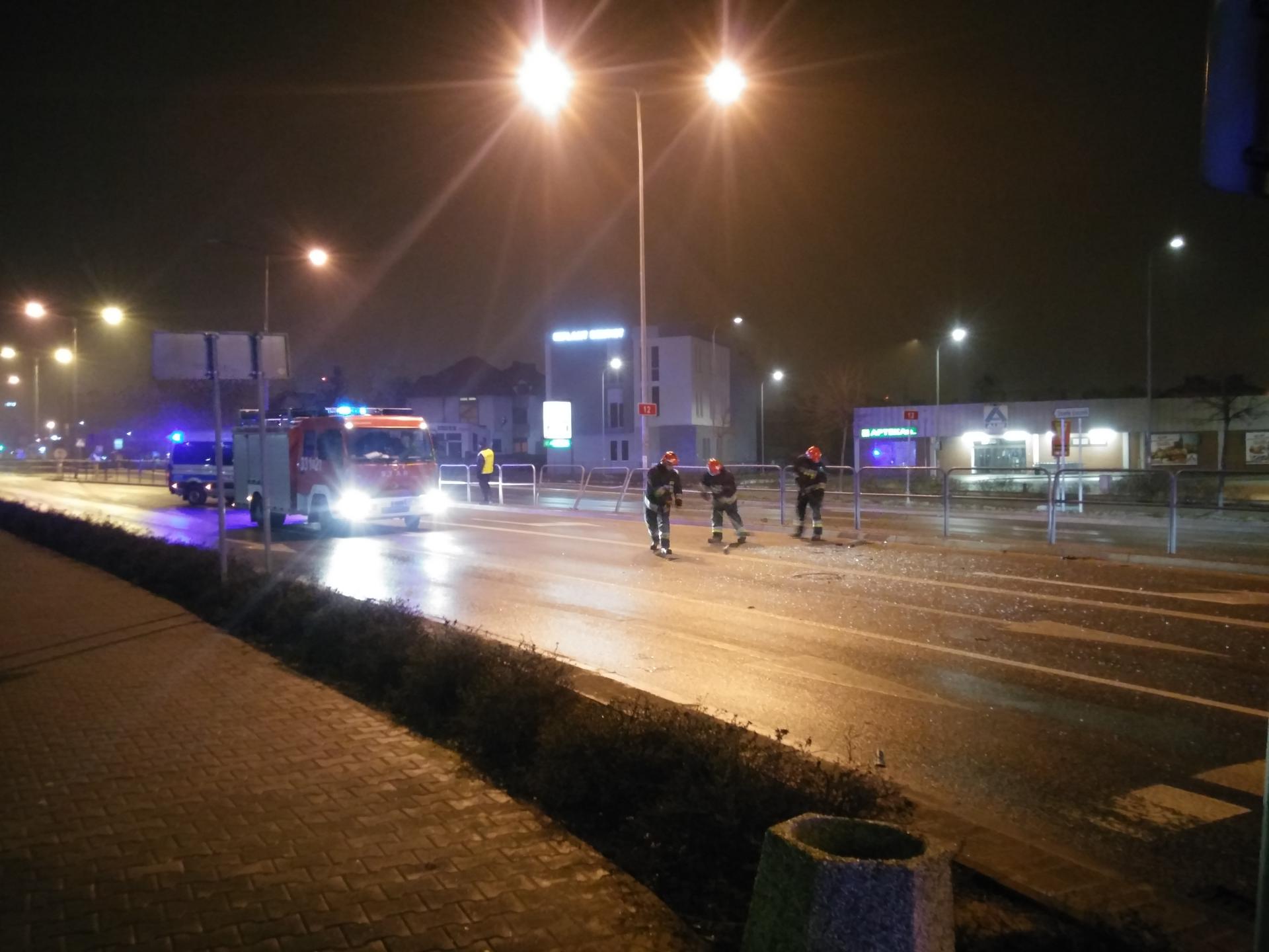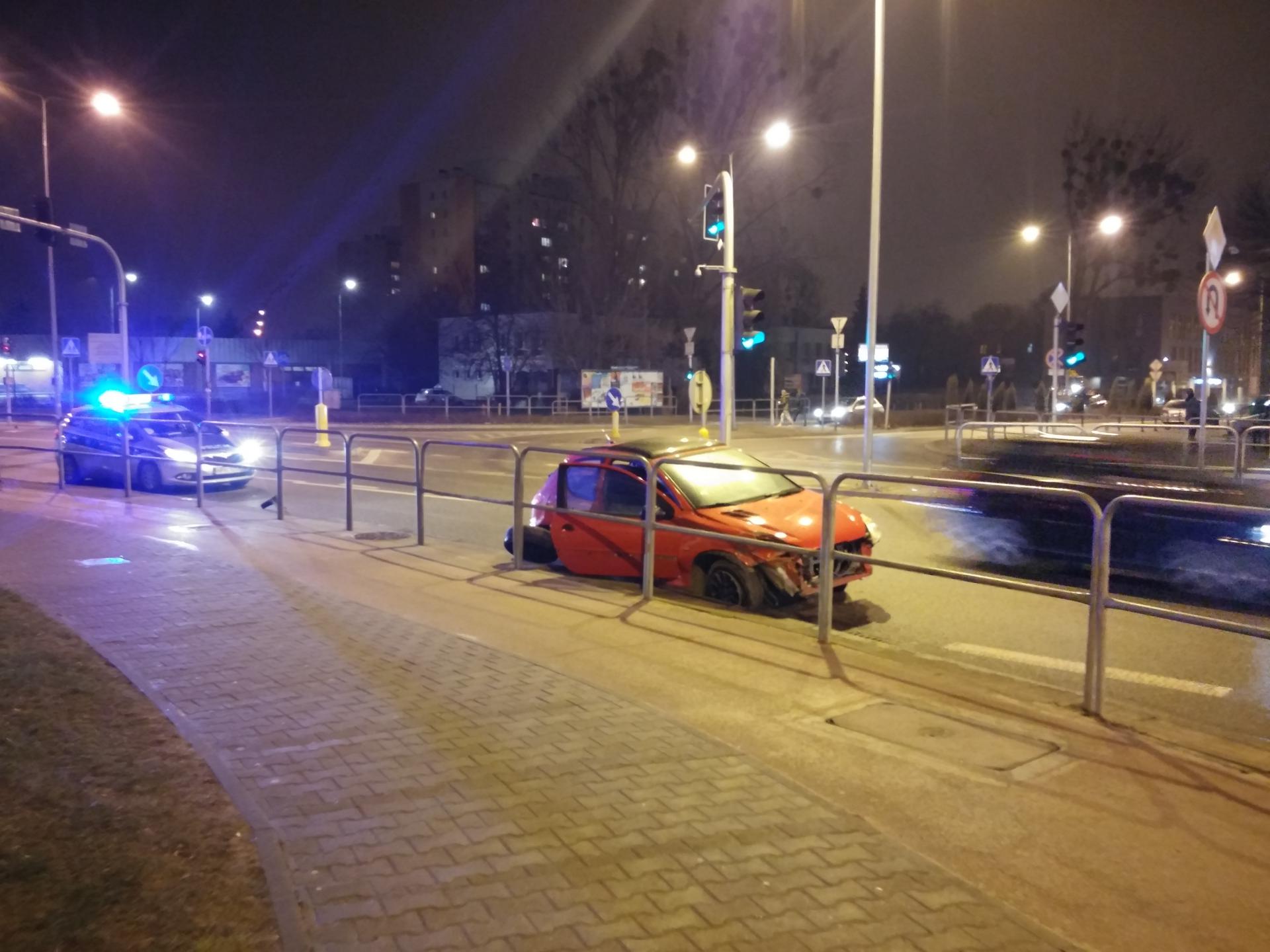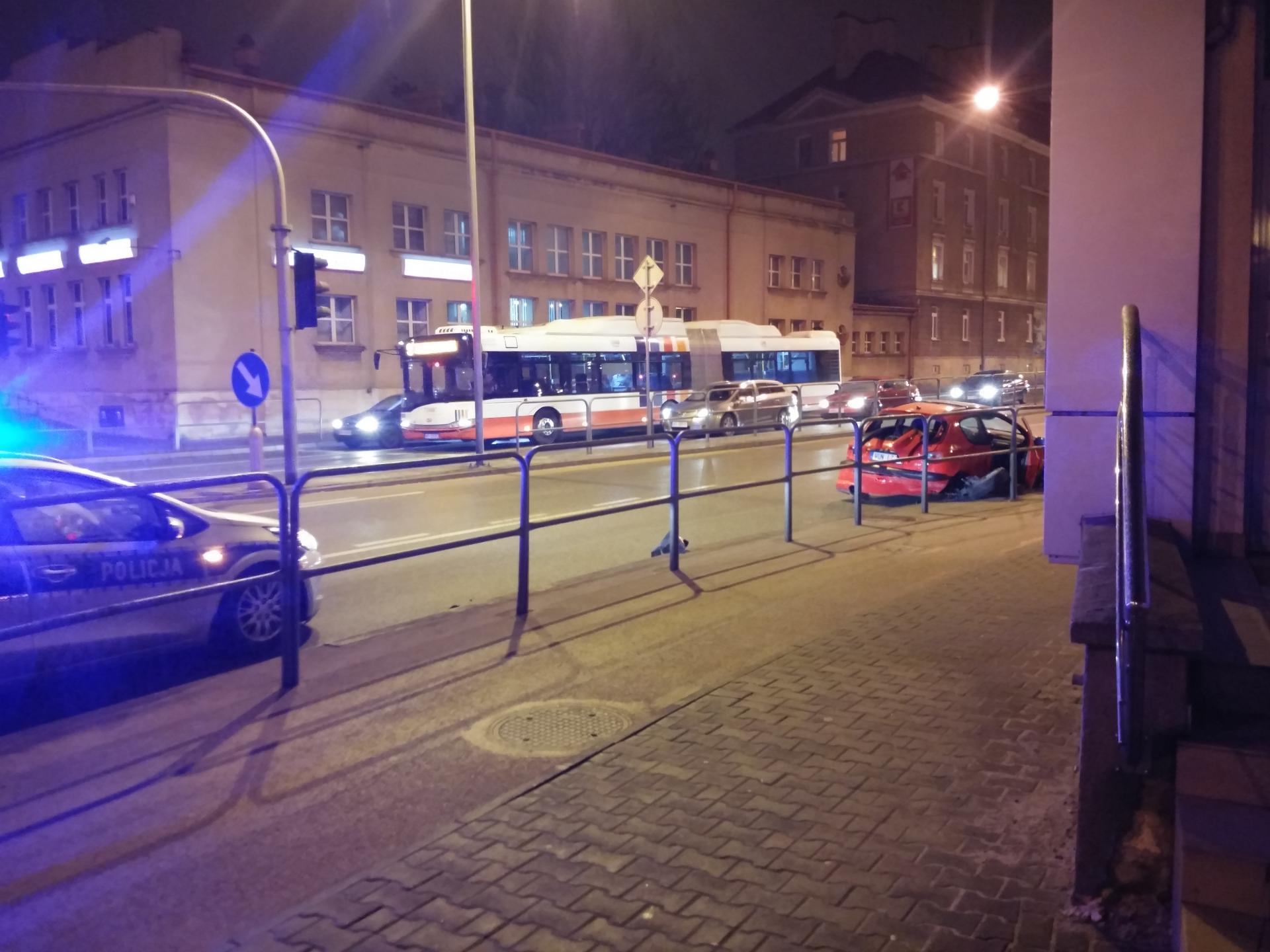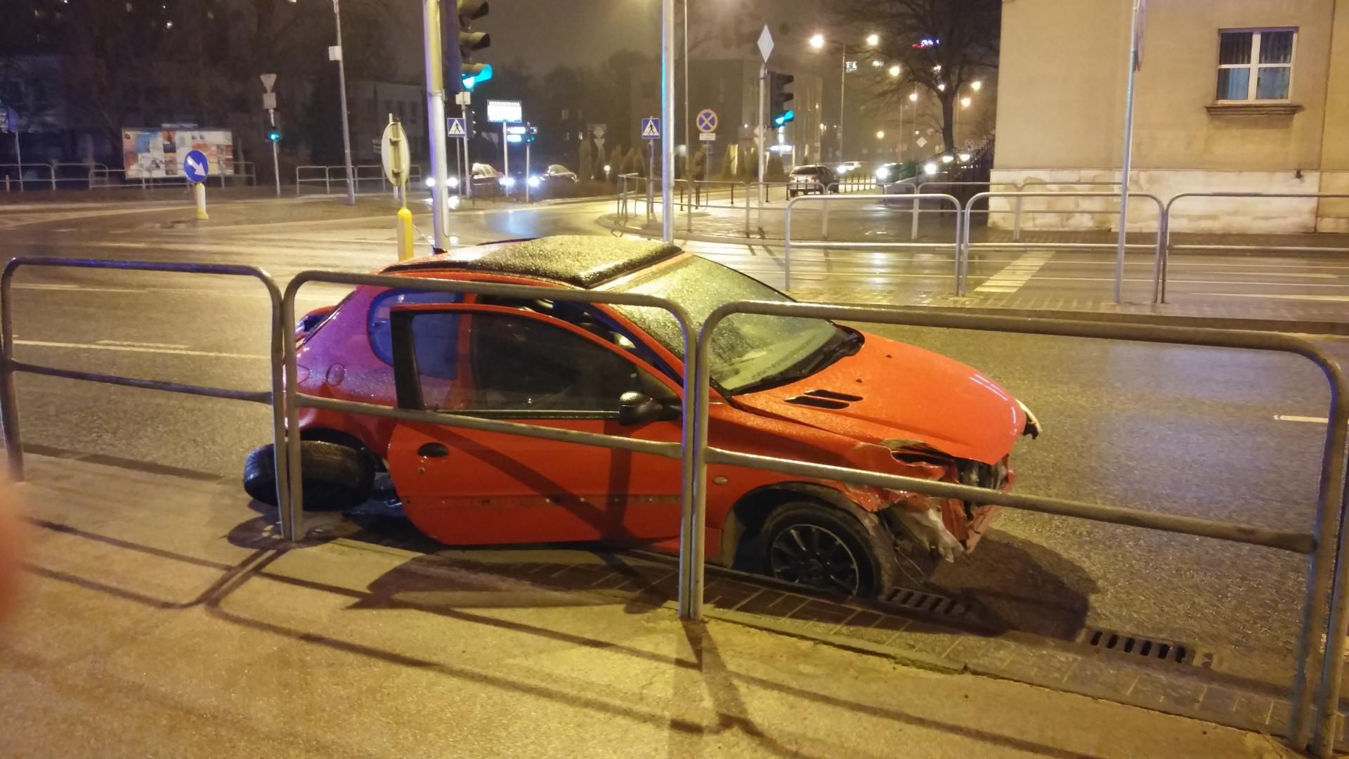 Wczoraj wieczorem (20 marca) na ul. 1905 roku, na wysokości marketu Aldi samochód osobowy marki peugeot 206 uderzył w barierki odgradzające pasy ruchu.