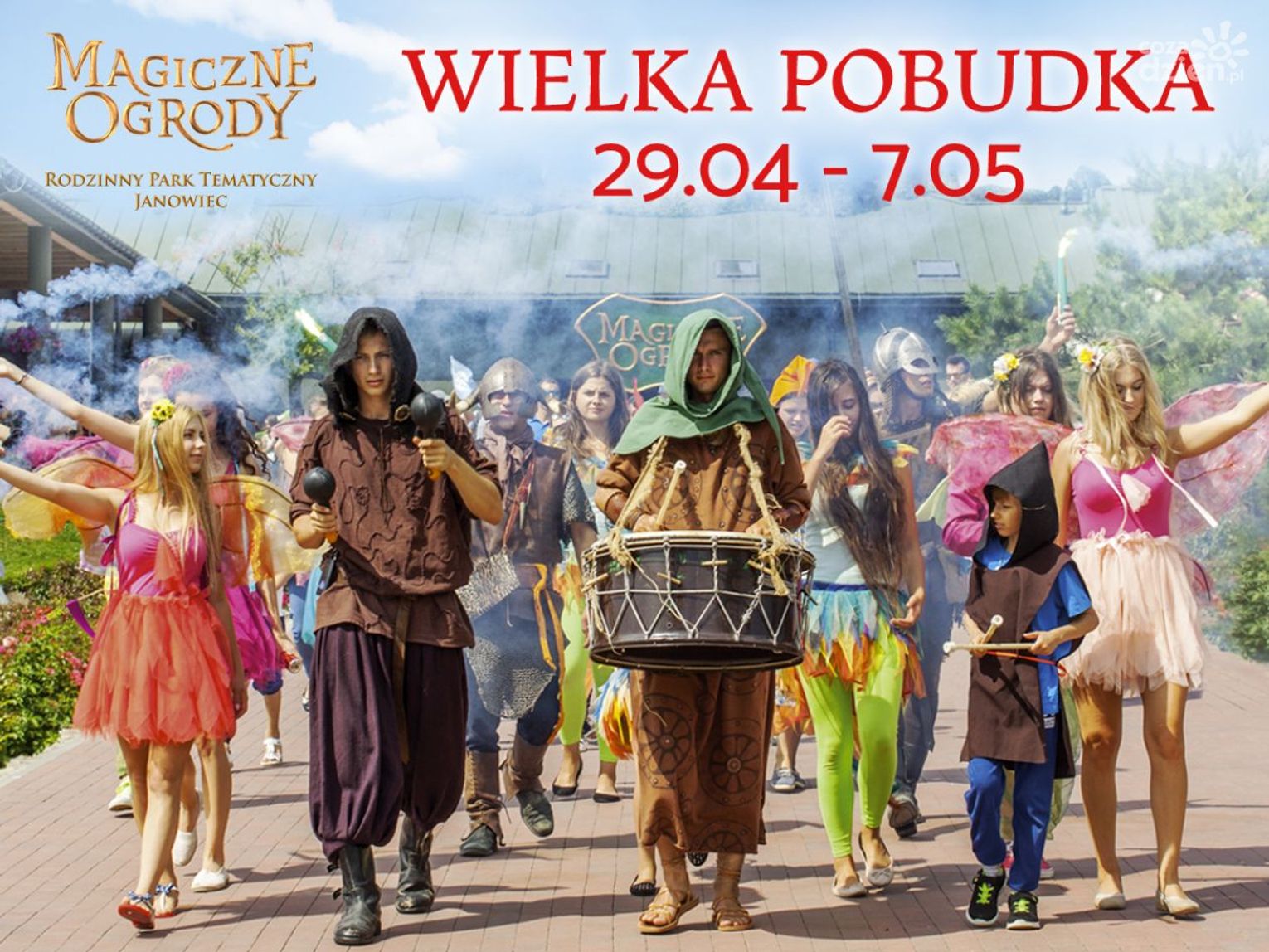 Z tej okazji Magiczne Ogrody przygotowały dla wszystkich swoich gości wiele wyjątkowych zabaw i atrakcji. Będziecie mogli bawić się z Mordolami, Wróżkami Smużkami w ich wspaniałym zamku, Magicznymi Patkami, Bulwiakami, Krasnoludami i pozostałymi mieszkańcami baśniowego świata. Odbędą się także zapierające dech w piersiach pokazy kaskaderskie połączone z budzeniem Króla Eryka, który zaspał na Wielkie Otwarcie.