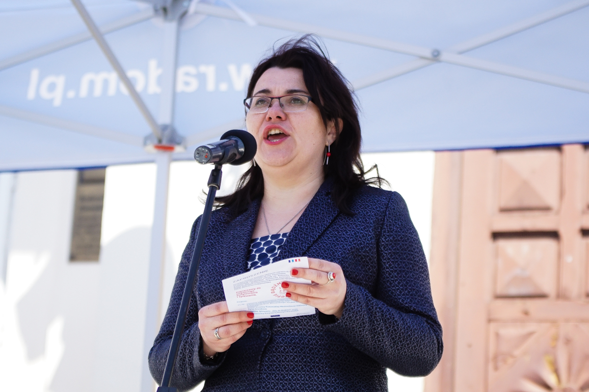 Już na miejscu młodzi muzycy z Grandioso zaprezentowali krótki recital, dając pokaz swoich wyjątkowych umiejętności. Nie na darmo uchodzą za jednych z najlepszych w kraju. Po nich na scenie pojawiła się Katarzyna Bochyńska-Wojdył. Znana sopranistka wykonała oficjalny hymn Unii Europejskiej. Zawtórowali jej zebrani radomianie, a wspólne wykonanie „Ody do Radości” zakończyło radomskie obchody rocznicy.
