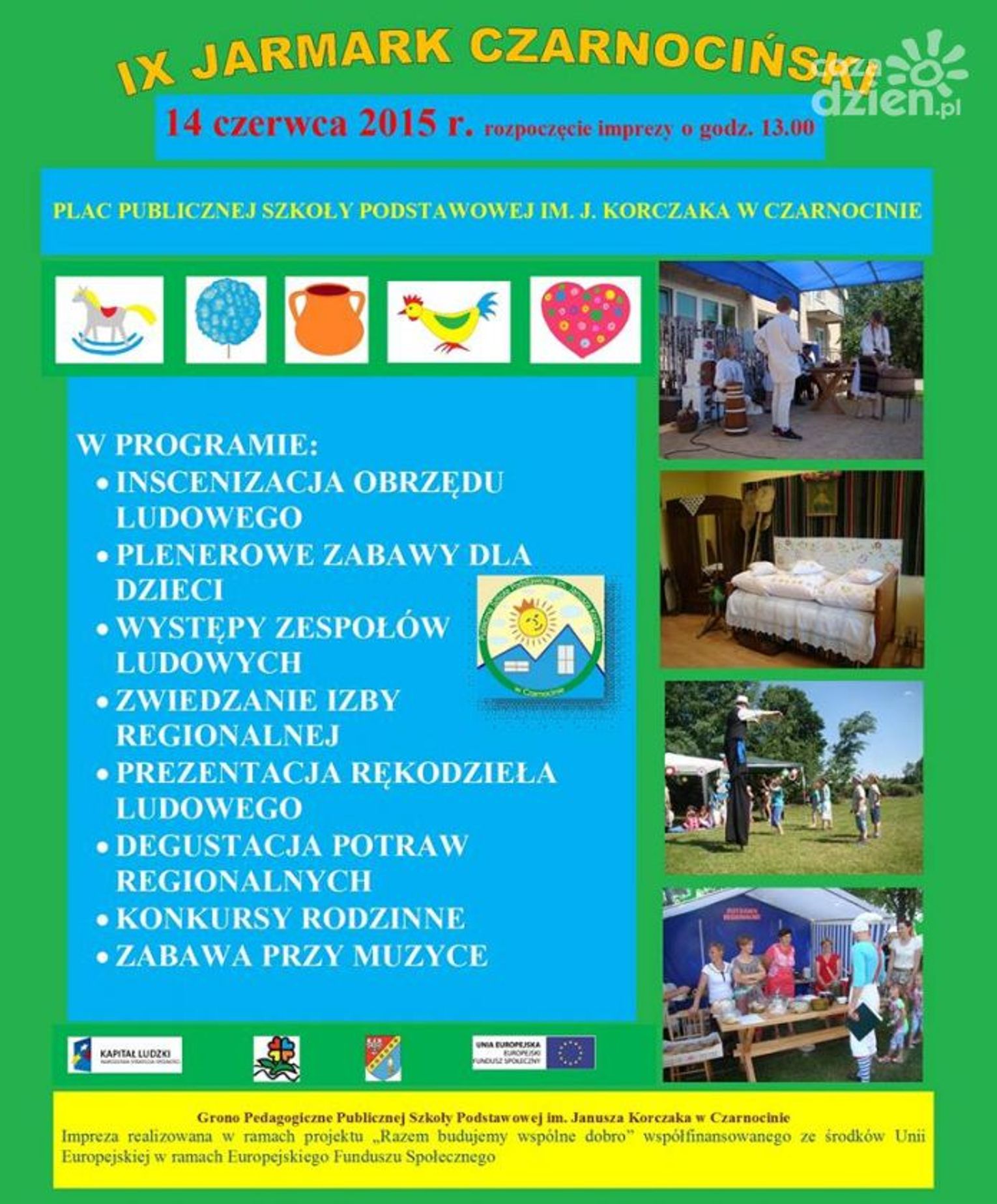 Tradycyjnie już zapraszamy do izby regionalnej, na kiermasz rękodzieła ludowego oraz na degustację potraw regionalnych. Będzie jarmarcznie, kolorowo i smacznie.