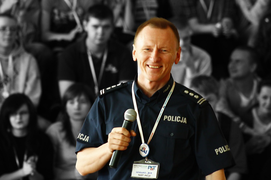 insp. GRZEGORZ JACH - Pełnomocnik Komendanta Głównego Policji ds. promocji bezpieczeństwa publicznego, pedagog i reżyser teatralny. Założyciel warszawskiego teatru Scena 07 (1996), twórca Centralnych Artystycznych Akcji Letnich (1997-2006), autor Ogólnopolskiego Programu Edukacyjno-Profilaktycznego "Profilaktyka a Ty" (od 2006 r. - www.pat.policja.gov.pl). Szef ogólnopolskich akcji profilaktyczno-artystycznych "Przystanek PaT" (od 2006 r.), inicjator Zrywu Wolnych Serc w Ogólnopolskim Głosie Profilaktyki (od2012 r.). Społeczny Doradca Rzecznika Praw Dziecka. Kawaler Orderu Uśmiechu.