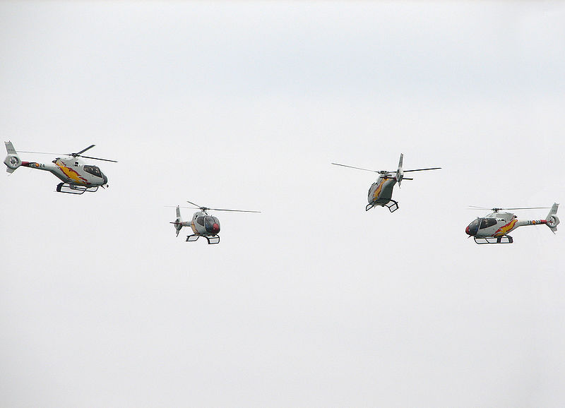Po dwóch pokazach solistów kibice zobaczą kolejną formację. Tym razem nad radomskim niebem będą latać Hiszpanie. Na pierwszy ogień pójdzie debiutująca na Air Show grupa Patrulla Aspa. Zespół powstał w 2003 roku. Piloci latają na lekkich śmigłowcach wielozadaniowych Eurocopter Colibri.