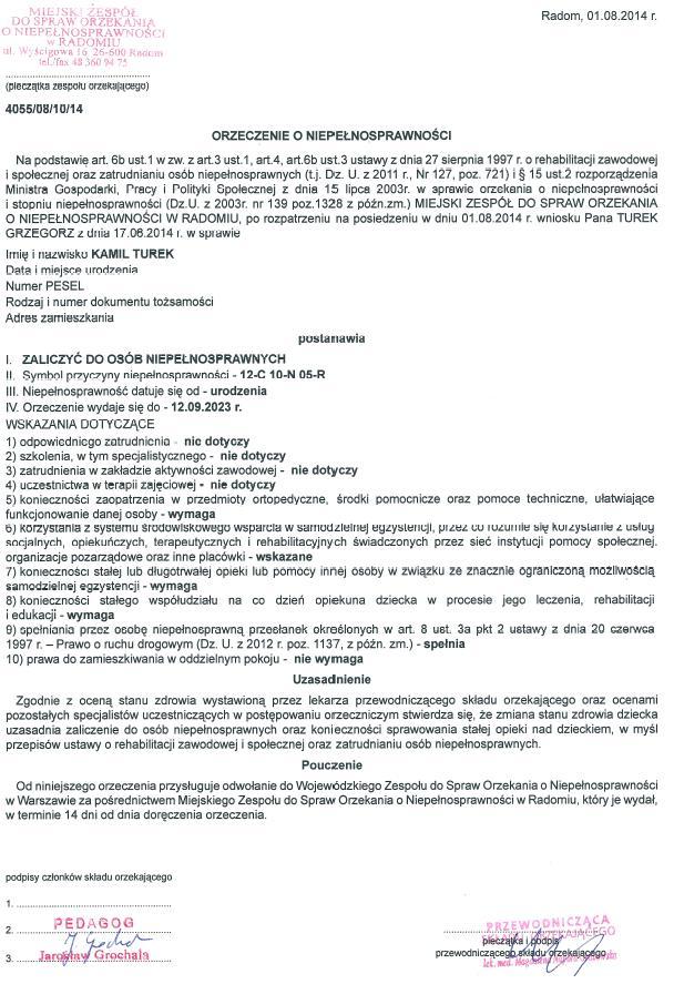 „7044 Turek Kamil – darowizna na pomoc i ochronę zdrowia”