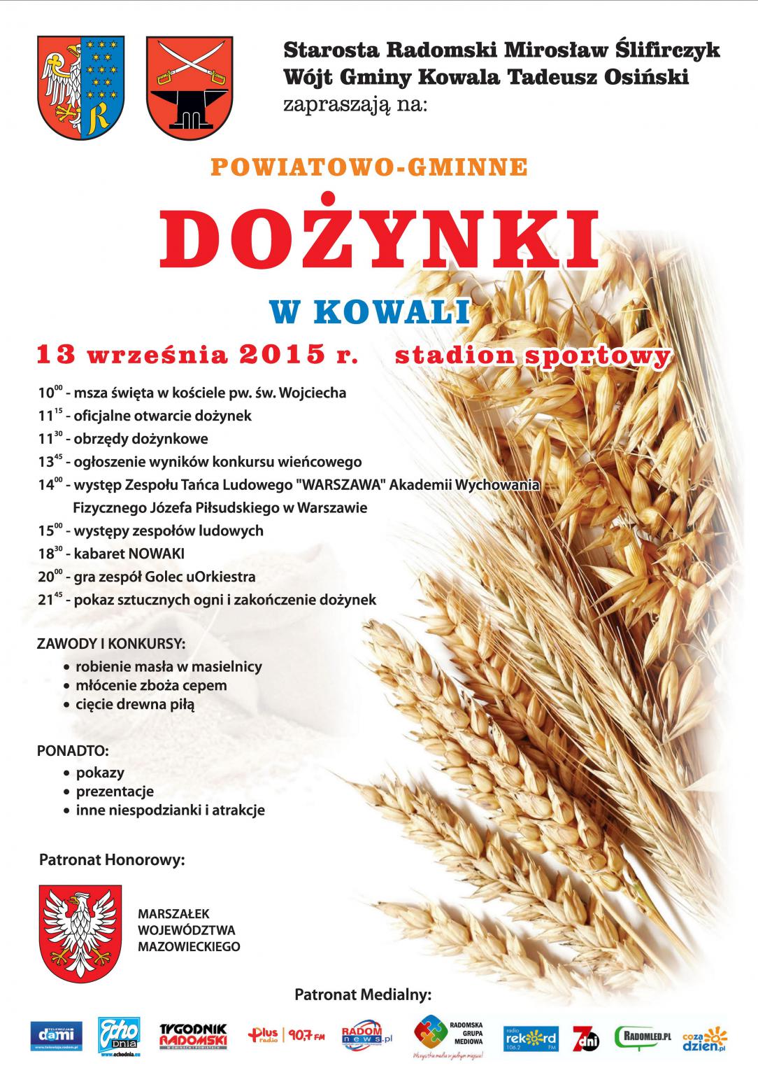 dożynek powiatowo-gminnych w Kowali wystąpi zespół Golec