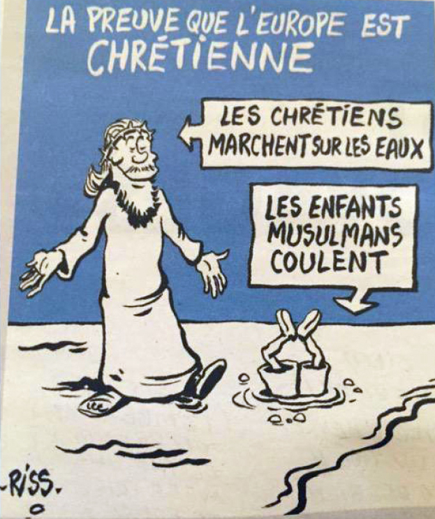 „Dowód na to, że Europa jest chrześcijańska. Chrześcijanie chodzą po wodzie. Muzułmańskie dzieci toną.”