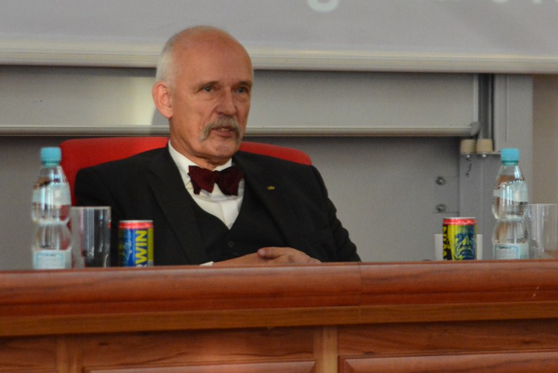 Podkreślił również, że celem gospodarki jest dobro konsumenta. - Jeżeli rządzi kapitalizm, to znaczy, że w kraju rządzą kobiety. To one przecież wybierając określony sklep, zmuszają producentów do obniżenia cen. Natomiast jeżeli w kraju rządzi socjalizm, dobro konsumenta idzie w kąt. Powstają wtedy nowe budynki po to, by ludzie mieli pracę – mówił. Zdaniem polityka kapitalizm jest dla ludzi biednych, ale chcących pracować. - 103 lata temu zwykły robotnik był w stanie utrzymać swoją niepracującą żonę i pięcioro dzieci. Co stało się od tamtego czasu? Podatki! 103 lata temu nie było podatków. Nie zdajemy sobie sprawy ile płacimy podatków, podatki stanowią 83% naszych wyrobów. Panuje wszechobecna sztuka „ukrywania” podatków, aby płacić je, ale o tym nie wiedzieć. Co więcej budżet państwa wynoszący 600 mld marnuje z tego 40% czyli 250 mld. A z tego można wyżywić 50 tys. rodzin. Te pieniądze nie są kradzione, one są marnowane. Z pieniędzy zbieranych przez fundację na głodujące dzieci trafia do potrzebujących rodzin w Afryce tylko 0,6%. Gdzie jest reszta? Reszta idzie na zakup statków, transport… - stwierdził Korwin.