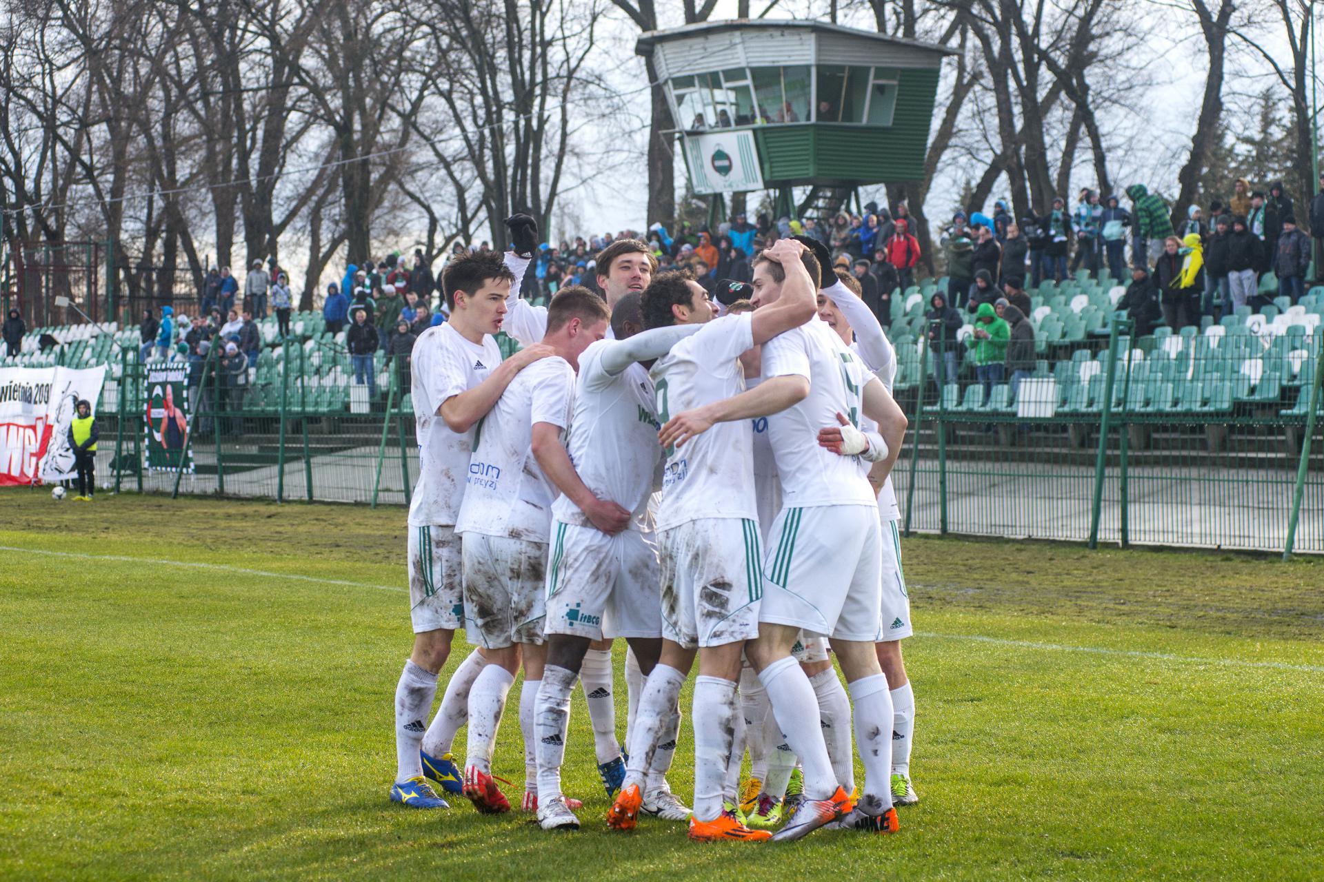 Po 21 serii gier "zieloni" powiększyli przewagę w tabeli nad drugim Ursusem Warszawa do dwunastu oczek. Stołeczny zespół przegrał w środę na wyjeździe ze Startem Otwock 1:2.