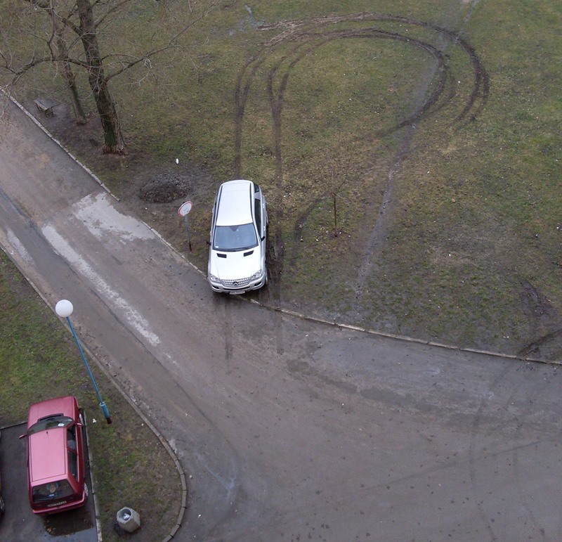 Grudzień: Mistrz parkowania wylądował na trawniku. (fot. Piotrek)