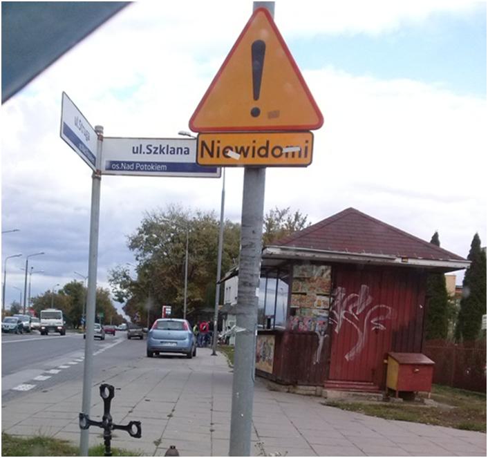 ale również zasłania widoczność drogi z prawej strony. Zdjęcie zrobione na ulicy
