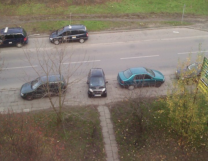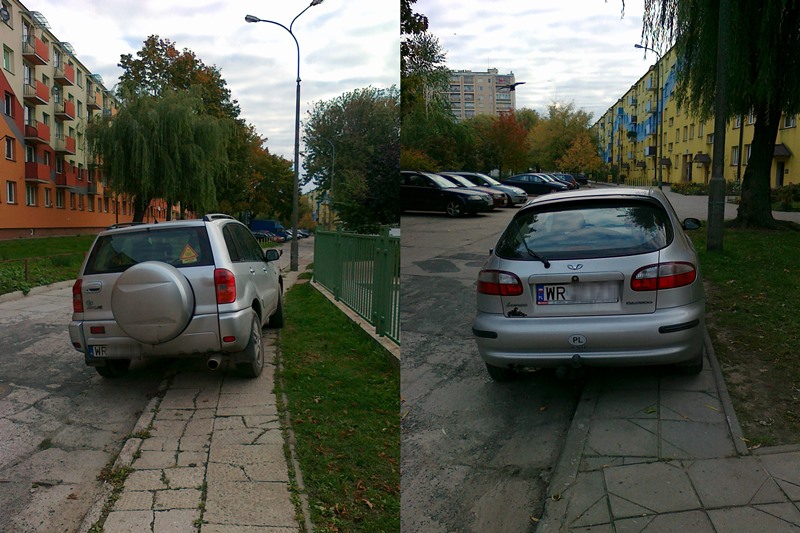 Październik: Jedno miejsce, różne sposoby parkowania. (fot. Tomek)