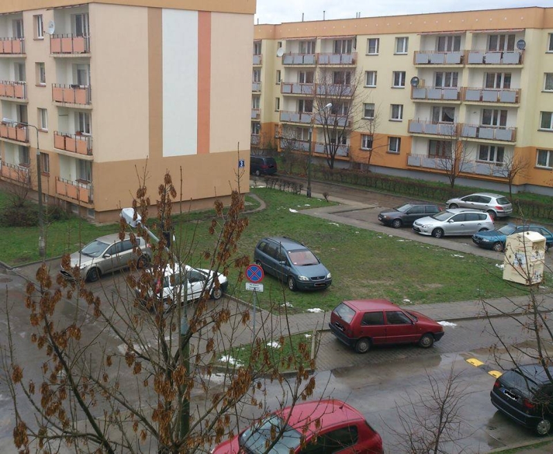Struga 108. Mistrz parkowania na trawniku a do parkingu 10 metrów (fot. Mariusz).