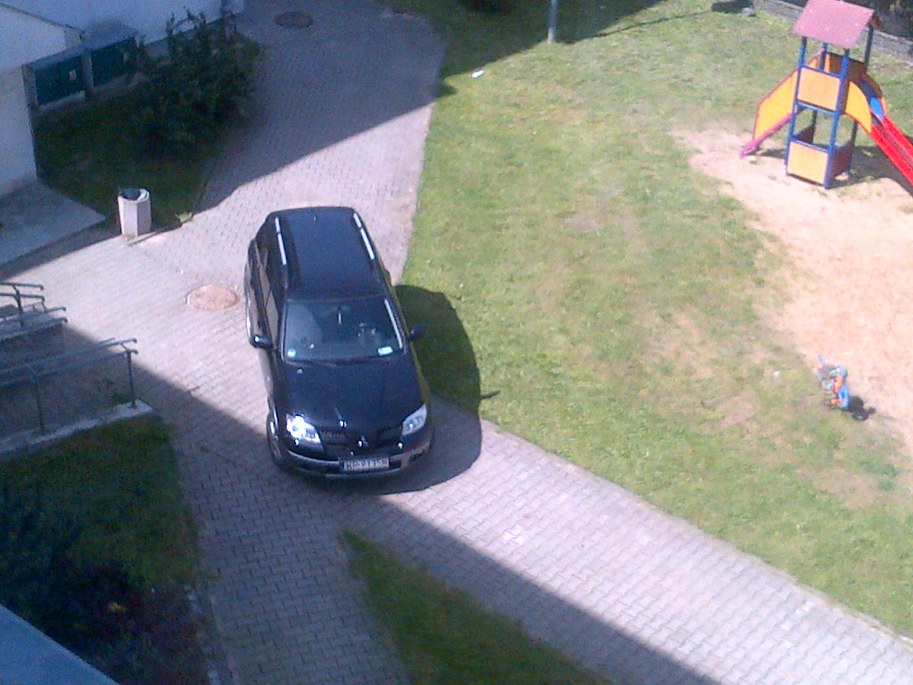 Wrzesień: Ludzka pomysłowość nie zna granic: tak był zaparkowany samochód na parkingu przy ul. Sadkowskiej 15. (fot. M.)
