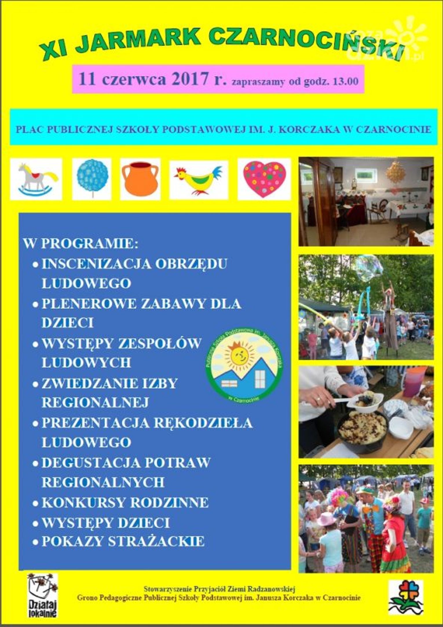 XI Jarmark Czarnociński to festyn ludowy, którego głównym założeniem jest wyszukiwanie i podtrzymywanie tradycji naszego regionu oraz integracja międzypokoleniowa. Każdego roku, w drugą niedzielę czerwca, do wspólnego projektu zapraszani są twórcy ludowi, którzy prezentują swoje wyroby, społeczność lokalna ma możliwość zabawy przy ludowej muzyce, degustacji potraw regionalnych. Przypominane są również obrzędy i zwyczaje ludowe w inscenizacjach przygotowanych przez uczniów – oczepiny, wiejskie wesele, przędzenie lnu, rwanie pierza, kiszenie kapusty, noc świętojańska, pieczenie chleba itp. Można też obejrzeć izbę regionalną, urządzoną na wzór tradycyjnego wiejskiego pokoju. Dużym zainteresowaniem cieszą się turnieje rodzinne i inne atrakcje przeznaczone dla różnych grup wiekowych. Grupę przygotowującą projekt tworzą nauczyciele Publicznej Szkoły Podstawowej im. Janusza Korczaka w Czarnocinie. Początek imprezy o godz. 13.00.