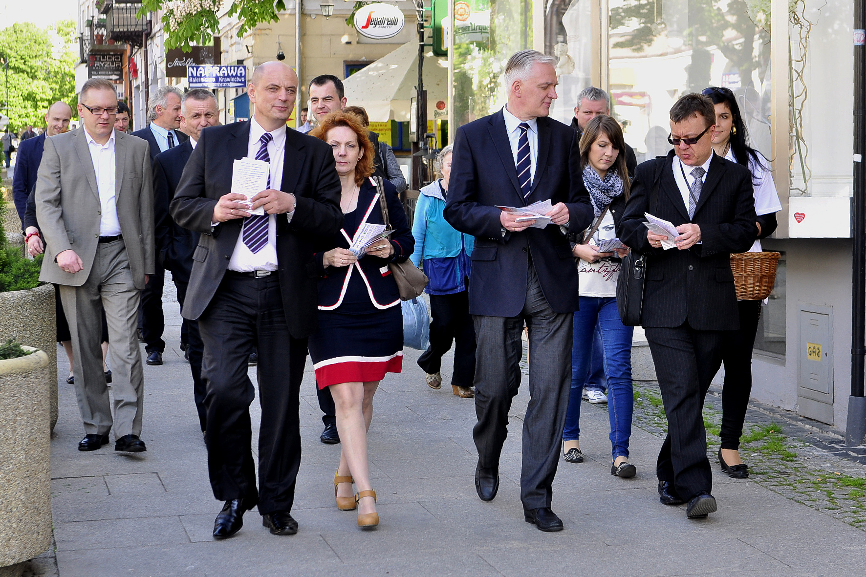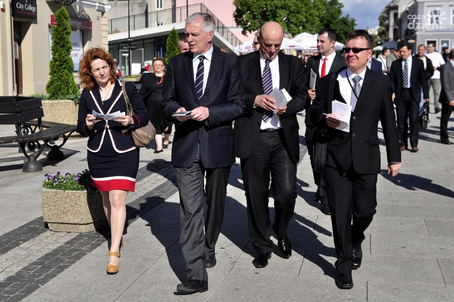 Jarosław Gowin po krótkim spotkani z dziennikarzami przy pomniku Jana Kochanowskiego spacerował wraz ze swoimi sympatykami po deptaku, rozdając ulotki i jabłka oraz rozmawiając z mieszkańcami naszego miasta.