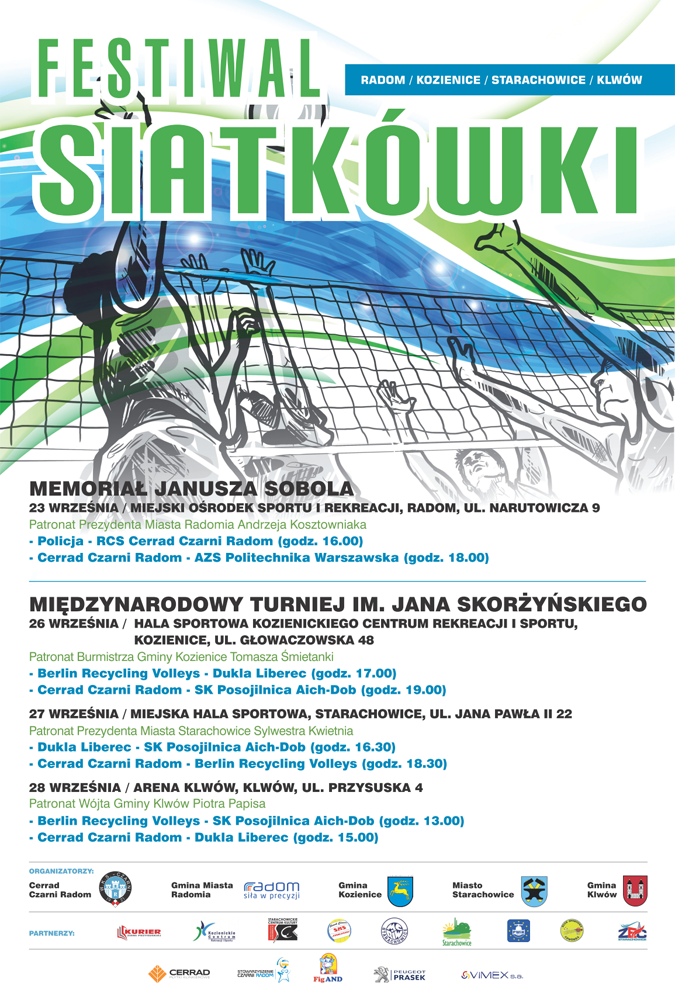Trzydniowe zmagania zapoczątkują mecze w Kozienicach (26 września). Następnego dnia siatkarze gościć będą w Starachowicach (27 września). Podsumowanie i uroczyste zakończenie turnieju będzie miało natomiast miejsce w Klwowie (28 września). Tydzień później Cerrad Czarni Radom rozegrają już pierwszy mecz o ligowe punkty.