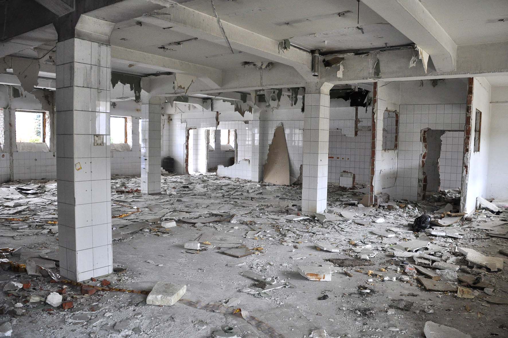 A dalej to, co zostało po Impersonie. Budynek nadaje się już tylko do wyburzenia. Co oczywiście kosztuje. Ruiny nie są zabezpieczone, może tu wejść każdy. I wiele osób wchodzi, na przykład za potrzebą. Nasz fotoreporter sprawdzał, czy bezpieczne są nastolatki, które tu wkroczyły.