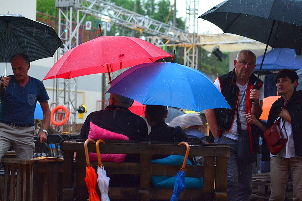 W sobotni wieczór na Radomian miał czekać występ Nata Osborna, muzyka z Brooklynu wraz z zespołem. Przybyłych na występ zamiast sporej dawki funk'soul przywitał rzęsisty deszcz, który uniemożliwił występ amerykańskiego bandu. Mimo zadaszenia sceny nie uniknięto zmoczenia instrumentów i występ został odwołany. Na tych, którzy pozostali mimo niesprzyjających warunków pogodowych czekały występy taneczne oraz występ Rozczarowanych, czyli radomskich iluzjonistów Adriana Pruskiego, znanego jako Just Edi Show i Czarka Gołębiewskiego. Czy warto było czekać? Zapraszamy do obejrzenia galerii zdjęć z wczorajszej imprezy.