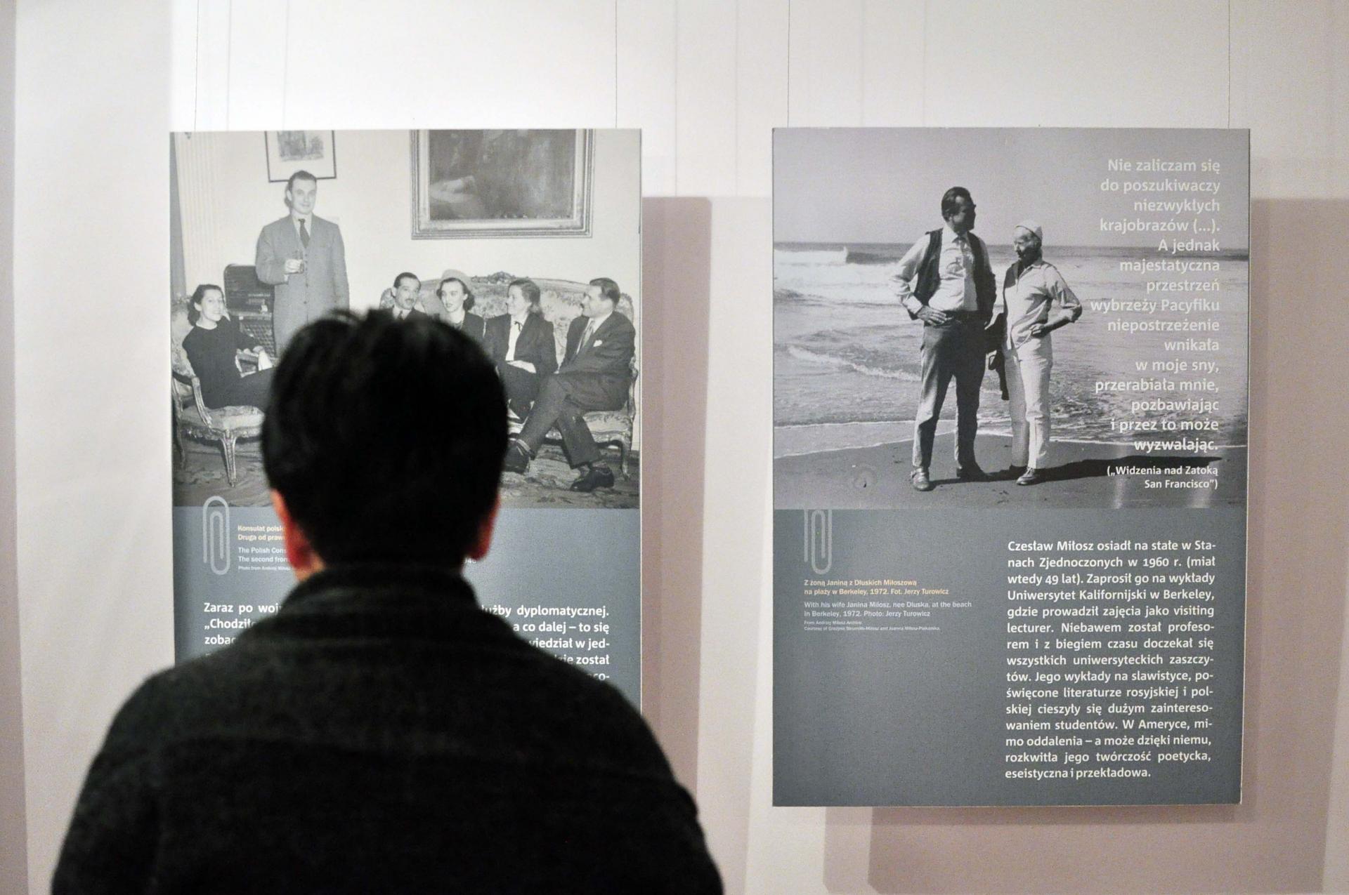 Zdjęcia przedstawiają noblistę w codziennych sytuacjach. Widzimy go na tarasie domu, w ogrodzie, idącego ulicą, podczas spotkania z czytelnikami w San Francisco. Z fotografii płynie przekaz pełen naturalności, autentyzmu i prostoty. Zdjęcia prezentowane na wystawie stanowią fragmenty dwóch niezwykle ciekawych archiwów. Jednym z nich jest „Fotonotatnik Adama Lizakowskiego”, młodego wówczas poety, który zaraz po wprowadzeniu stanu wojennego wyjechał do USA i zamieszkał najpierw w San Francisco, a potem w Chicago. Drugi zbiór fotografii został wykonany w latach 70. i 80. XX wieku przez brata noblisty - Andrzeja Miłosza, dziennikarza i dokumentalistę. Organizatorzy pokażą też zdjęcie z pierwszego pobytu Czesława Miłosza w USA, wykonane w polskim konsulacie.