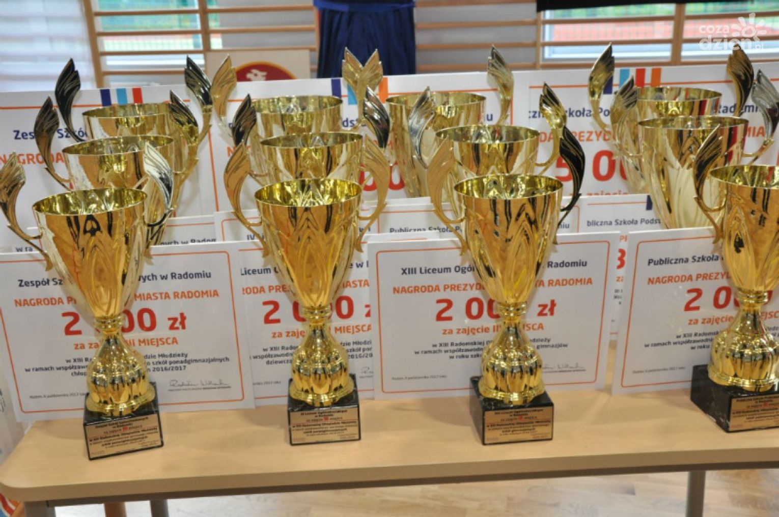 W roku szkolnym 2016/2017 w klasyfikacji szkół podstawowych na pierwszym miejscu uplasowała się PSP nr 4 przed PSP nr 34 i PSP nr 9. Nagrody za osiągnięcia we współzawodnictwie gimnazjów odebrali dyrektorzy szkół, w które je przekształcono. Pierwsza trafiła do PSP nr 6, druga do PSP nr 10, a trzecia do XIII LO. Wśród szkół ponadgimnazjalnych, w rywalizacji dziewcząt wygrało V LO im. R. Traugutta, przed IV LO im. T. Chałubińskiego i III LO im. D. Czachowskiego. W rywalizacji chłopców zwyciężył Zespół Szkół Elektronicznych, który wyprzedził Zespół Szkół Technicznych i Zespół Szkół Samochodowych. Zwycięskie szkoły otrzymały nagrody pieniężne z przeznaczeniem na zakup sprzętu sportowego. Indywidualne nagrody trafiły także do kilkudziesięciu najlepszych zawodników i ich trenerów. W roku szkolnym 2016/2017 zwycięzcy w kategorii szkół podstawowych i gimnazjalnych reprezentowali miasto podczas półfinałów regionalnych, a następnie w finałach Mazowieckich Igrzysk Młodzieży Szkolnej. Reprezentacja Radomia w tegorocznych Mazowieckich Igrzyskach Młodzieży Szkolnej wywalczyła 14 medali, w tym: 9 złotych (PSP 34 – siatkówka dziewcząt; PSP 17 – piłka nożna dziewcząt; PG 22 – siatkówka chłopców, ZSO 1 – koszykówka chłopców; ZSO 4 – piłka nożna dziewcząt, PG 22 – piłka nożna chłopców; PG 10 – pływanie sztafeta i indywidualnie dziewcząt: Gimnazjum Katolickie, PG 22 – indywidualne w lekkiej atletyce); 1 srebrny (indywidualnie w lekkiej atletyce – ZSO 7) 4 brązowe (PSP 4 – koszykówka chłopców; PG 10 – pływanie i sztafeta chłopców; PG 22 – sztafetowe biegi przełajowe: ZSO 1 – lekka atletyka). W kategorii gimnazjalnej, podczas Ogólnopolskiej Gimnazjady, reprezentantki ZSO 4 wywalczyły srebrne medale w piłce nożnej dziewcząt, natomiast piłkarze nożni PG 22 – zajęli 3 miejsce w kraju, zdobywając brązowe medale. Medal tego samego koloru przypadł również w udziale drużynie dziewcząt PSP 17 w mini piłce nożnej podczas Ogólnopolskiego Finału Młodzieży Szkolnej.