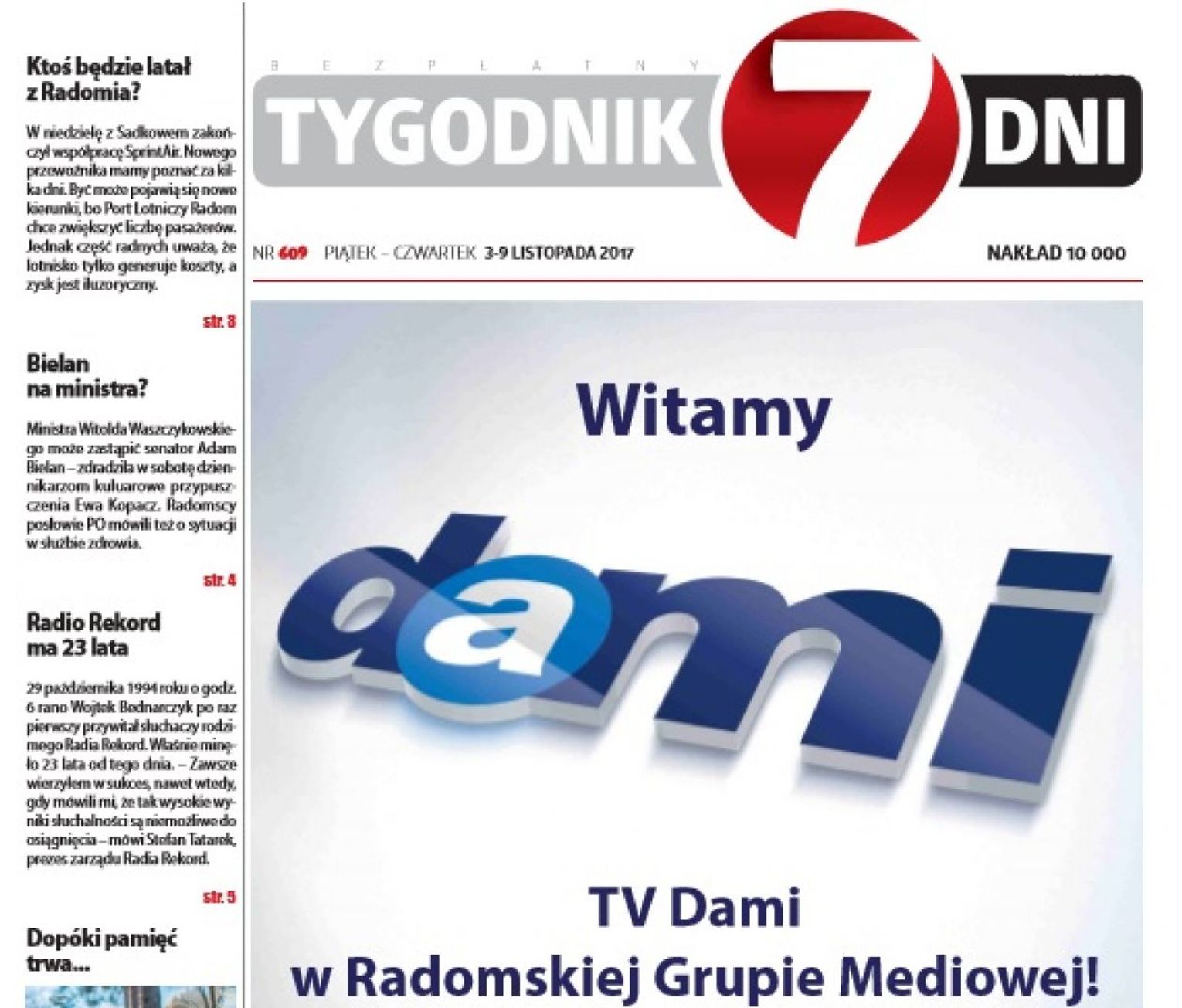 Świętujemy 23. urodziny Radia Rekord i włączenie do Radomskiej Grupy Mediowej telewizji Dami. Jak zawsze, radzimy jak przetrwać jesienne dni, dzięki odpowiedniej diecie, a także piszemy o tym, co najważniejszego wydarzyło się w rodzimym sporcie.