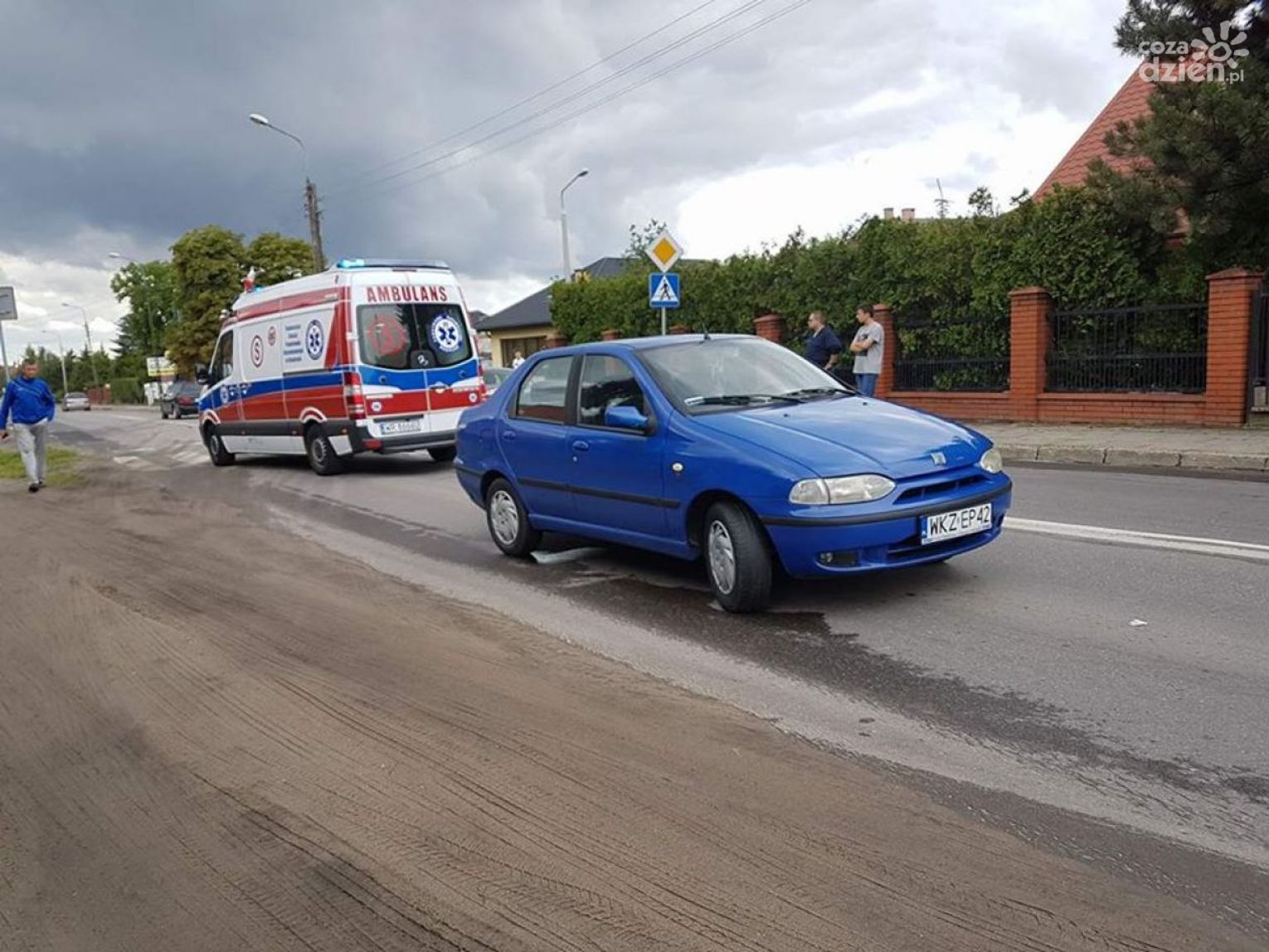 Poszkodowanemu w wyniku wypadku została udzielona pomoc przez ratowników z pogotowia ratunkowego.