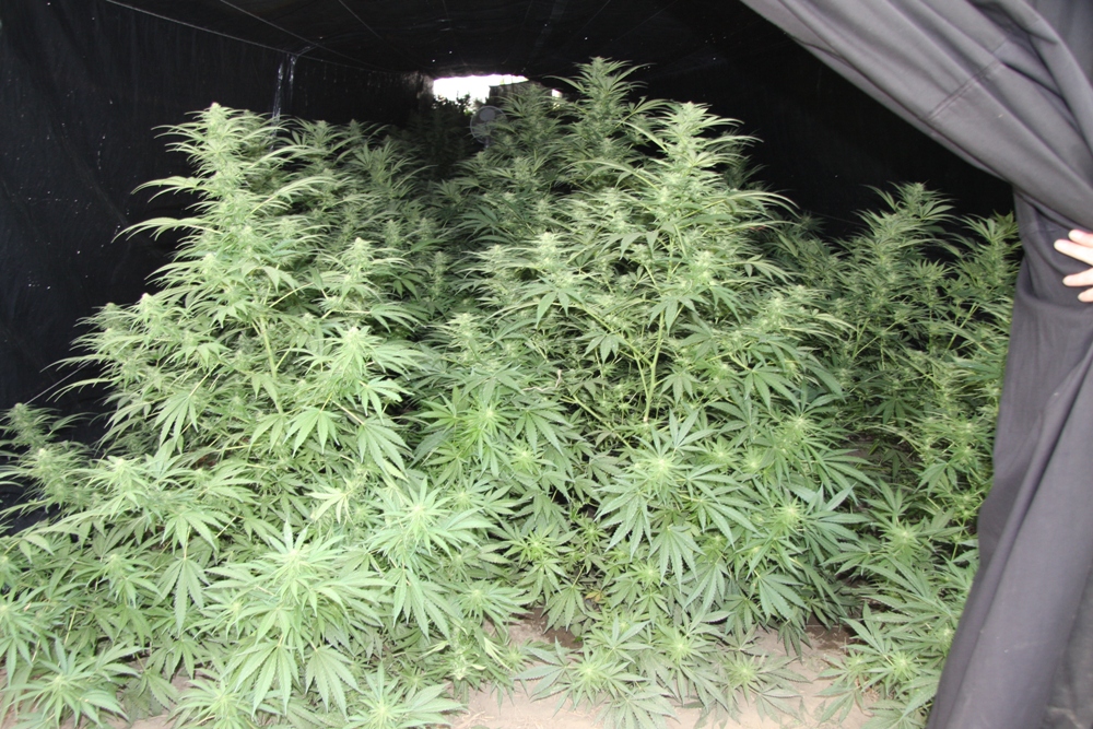 Na miejscu znaleziono cztery tunele foliowe, w których rosło 600 krzaków konopi indyjskich o wysokości od 1 do 2 m. Rośliny były w takiej fazie wzrostu, że zajmujący się nielegalnym procederem rozpoczęli już „zbiory”.