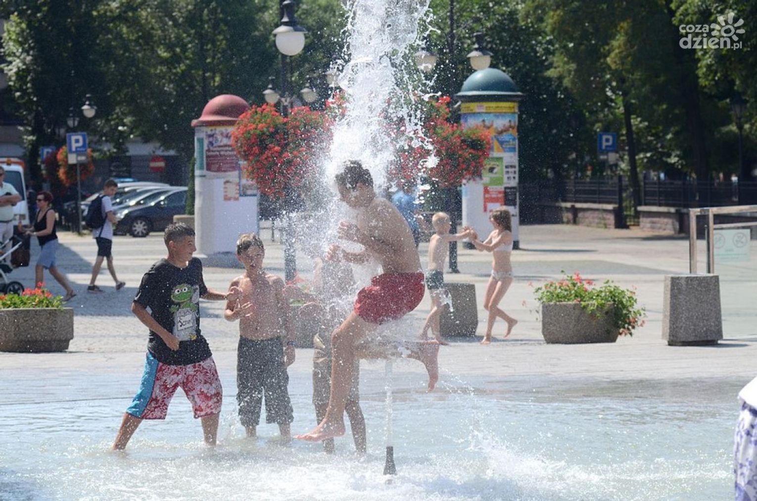 Szczególnie w czasie największych skwarów maluchy razem z rodzicami przychodzą, aby bawić się w fontannach. Dzieci są poubierane w kostiumy kąpielowe i coraz częściej wyposażone w dmuchane zabawki. W tej kwestii opinie mieszkańców są bardzo podzielone. Jedni twierdzą, że fontanny mają służyć wszystkim. Inni chcą kategorycznego zakazu wchodzenia do fontann, bo jest to niehigieniczne i niebezpieczne. Trzeba przyznać, że przy fontannach można zauważyć spektakularne wywrotki dzieciaków. Co na to Urząd Miejski?