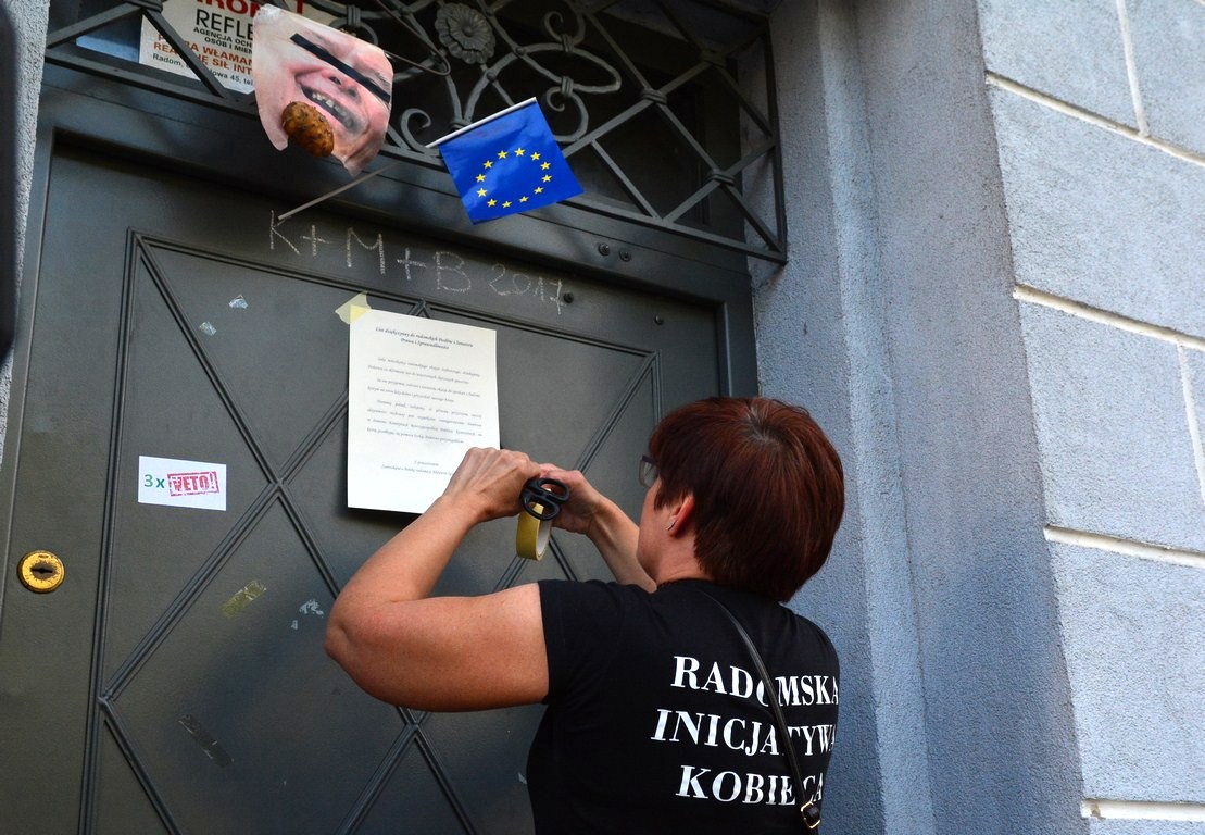 Na drzwiach siedziby Prawa i Sprawiedliwości uczestnicy protestu zawiesili list, który najpierw został odczytany. Oto jego treść: „Jako wyborcy radomskiego okręgu wyborczego dziękujemy za skłonienie nas do wieczornych lipcowych spacerów. Są one przyjemne, zdrowe i stanowią okazję do spotkań z ludźmi, którym na sercu leży dobro i przyszłość kraju. Nie mniej jednak żałujemy, że główną przyczyną naszej aktywności ruchowej jest wyjątkowe zaangażowanie państwa w łamanie konstytucji. Konstytucji, na którą państwo przysięgaliście. „