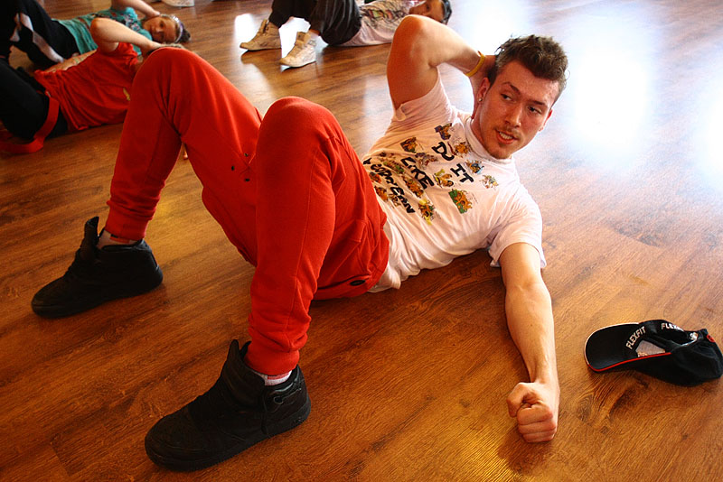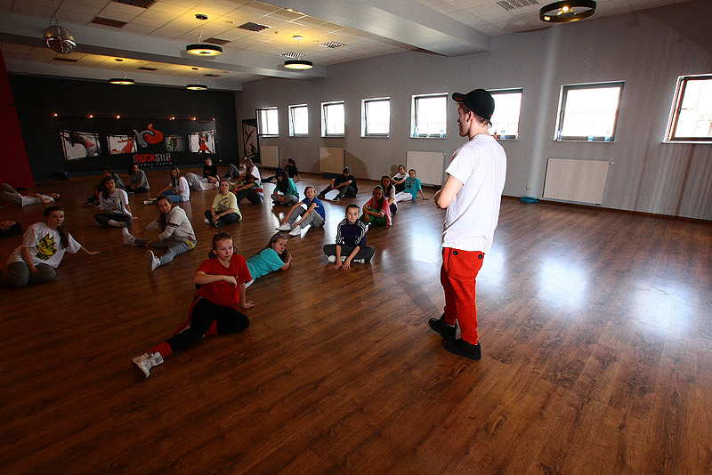 Zajęcia odbywały się w dwóch salach, ze starszymi uczniami ćwiczenia prowadził Mateusz. Zaskoczeniem dla zebranych była niemalże wojskowa rozgrzewka, jaką przygotował prowadzący na rozpoczęcie spotkania. Miało to na celu uświadomienie tancerzy, że sprawność fizyczna i kondycja jest niezbędna w tej formie aktywności. Zajęcia dla młodszej grupy poprowadziła Kasia, która wprowadziła uczestników w tajniki hip-hopu. Była to dla nich świetna zabawa i nauka w jednym.