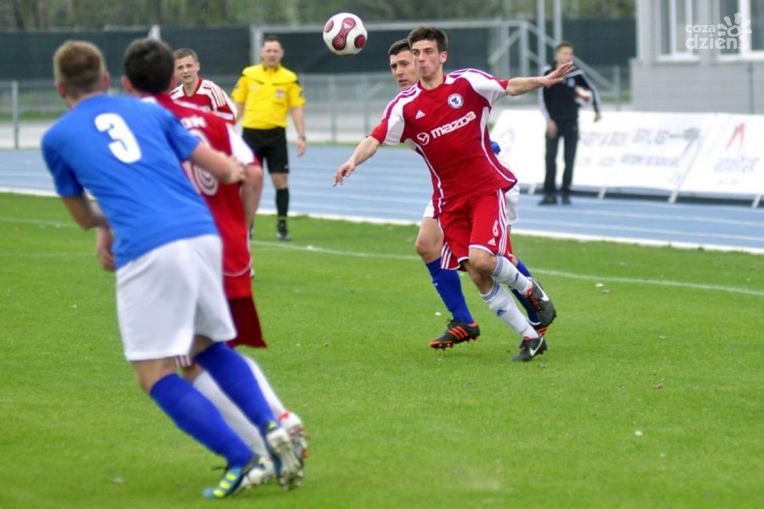 Spotkanie na stadionie w Karczewie toczyło się w dobrym tempie. Obu drużynom zależało na zdobyciu kompletu punktów, a akcje co rusz przenosiły się spod jednego pola karnego do drugiego. Żadnemu z zespołów nie udało się jednak trafić do siatki rywali. Podopieczni trenera Tomasza Dziubińskiego nie mieli więc okazji, aby zrobić tradycyjną "kołyskę" dla syna Norberta Rdzanka, który urodził się w nocy poprzedzającej to spotkanie.