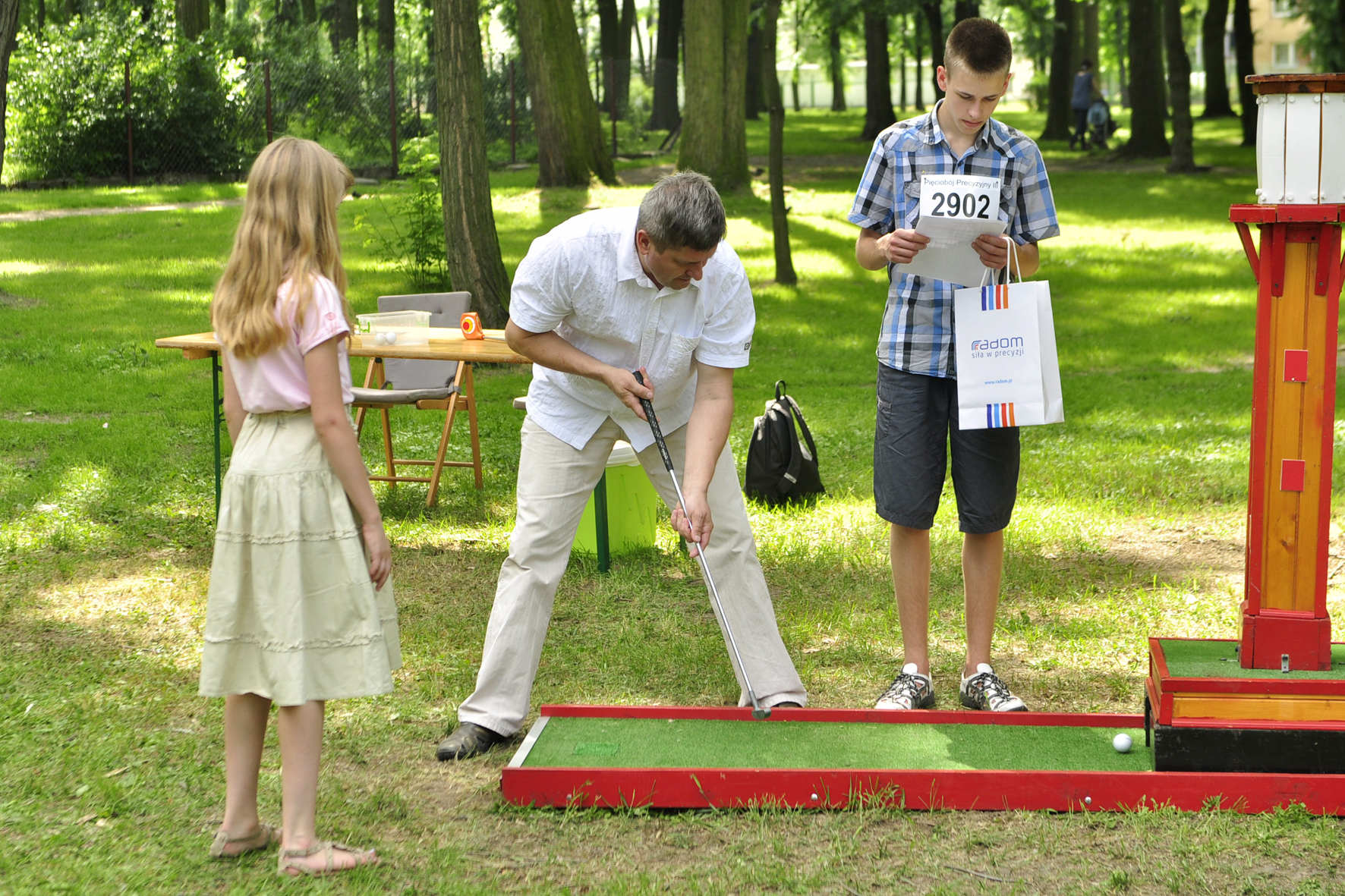 W niedzielę odbyła się część główna, a więc sam Pięciobój Precyzyjny. Padł rekord frekwencji, bowiem na starcie w Parku Leśniczówka zameldowało się 77 trzyosobowych zespołów. Radomianie rywalizowali w pięciu konkurencjach precyzyjnych - golf, strzelectwo, łucznictwo, darts oraz bule. - Mamy rekord w ilości startujących osób w porównaniu do ubiegłych dwóch lat i z tego bardzo się cieszymy. Pogoda dopisała, było bardzo ciepło. Na początku obawialiśmy się nieco o frekwencję, ale z biegiem czasu coraz więcej ludzi pojawiało się na miejscu zawodów - podkreślał Bartłomiej Kłusek, organizator zmagań.