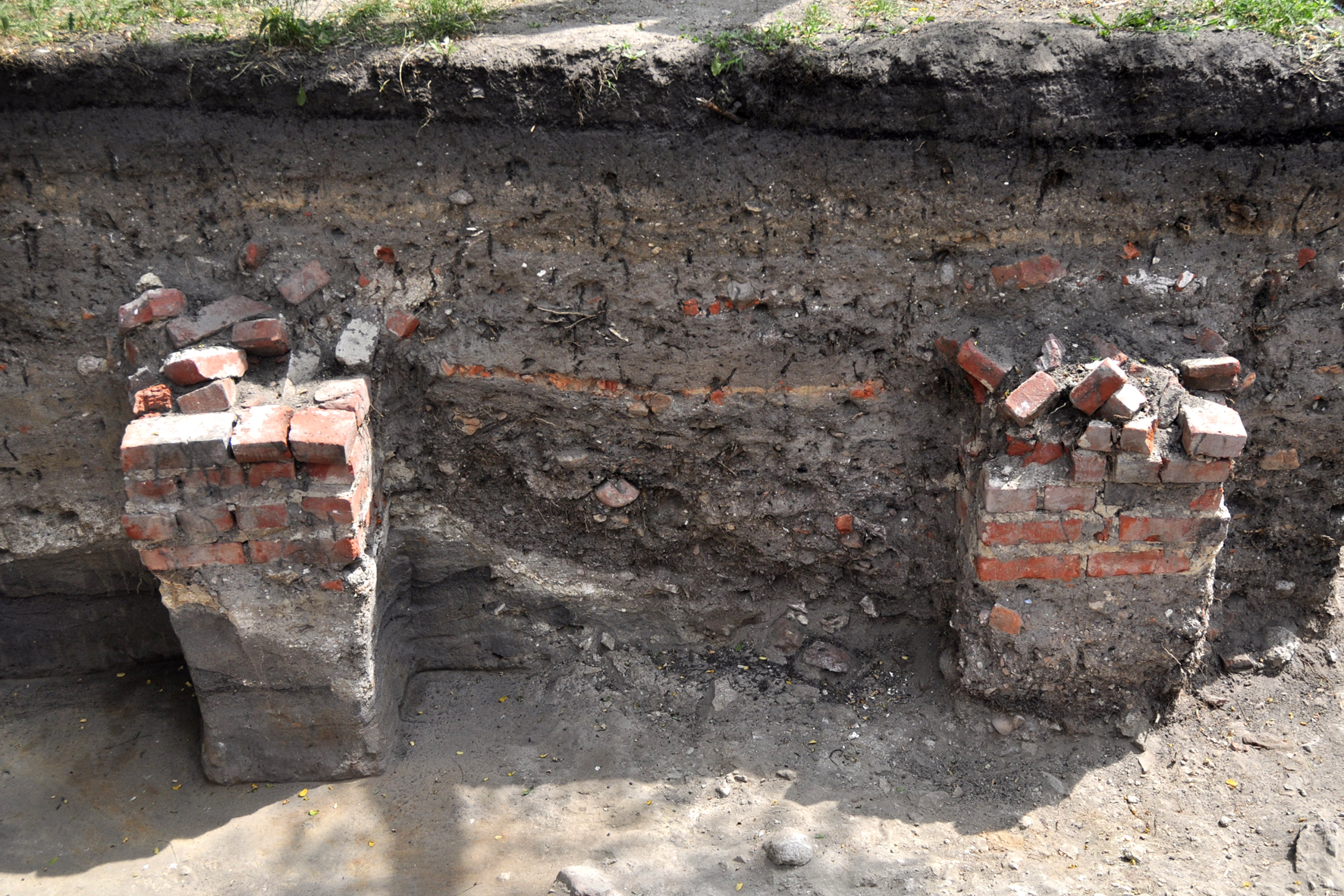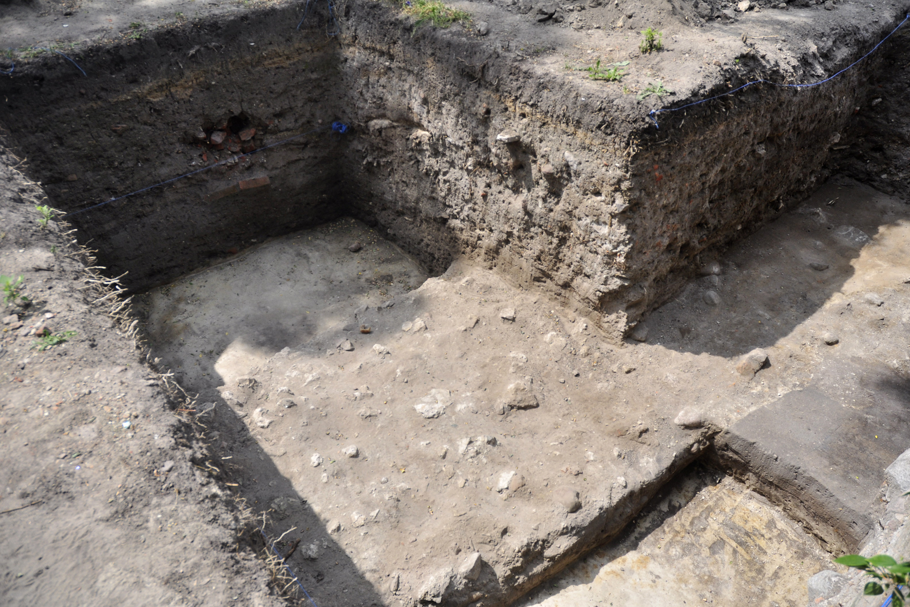 Coś się jednak udało ustalić. Mury w tym miejscu mogły mieć średnio 2,2 – 2,5 m szerokości. W pewnym momencie ich ślad mocno się rozszerza. Czy tu właśnie była baszta? To trzeba jeszcze sprawdzić.