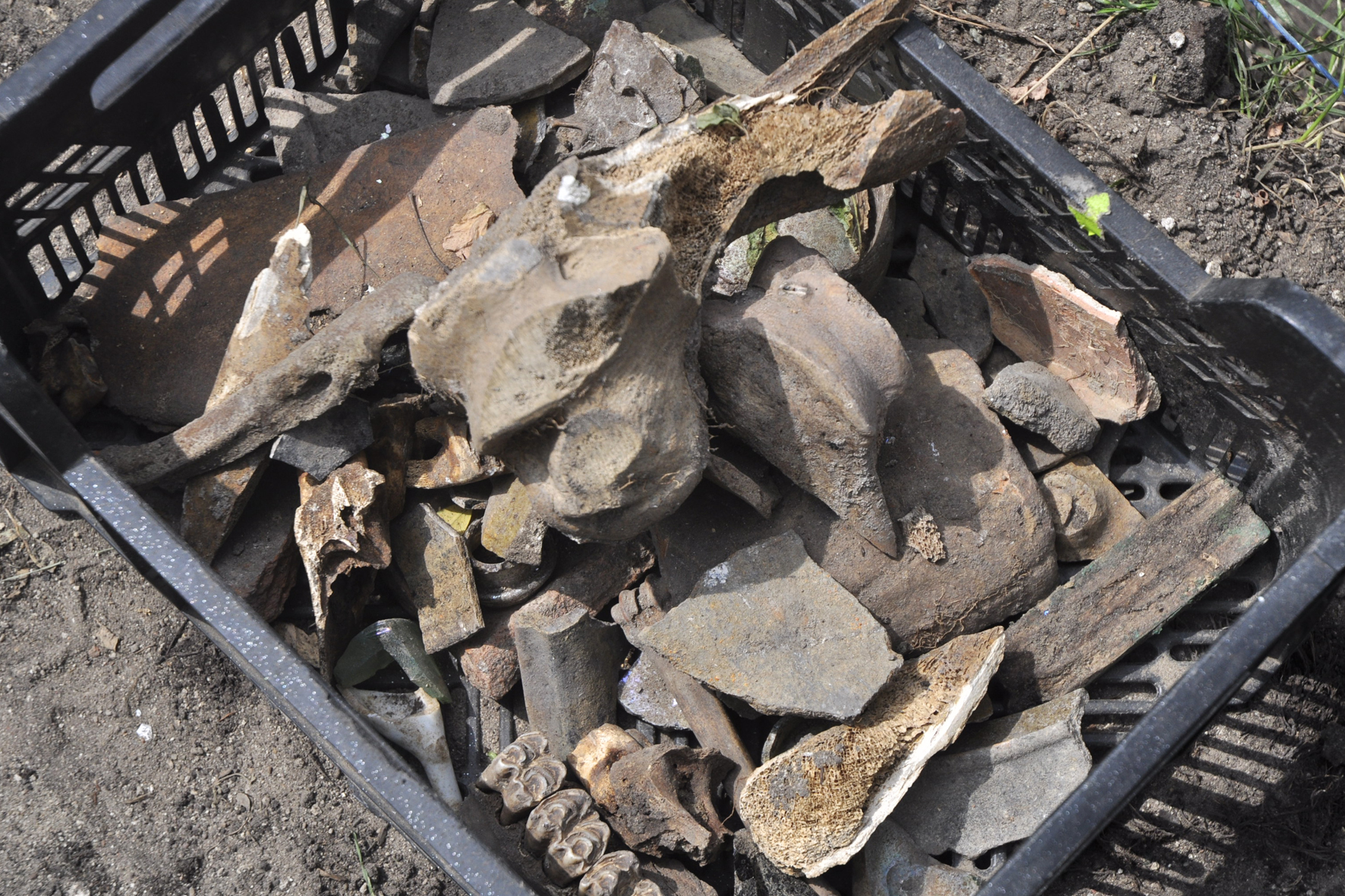 Materiał zabytkowy pozyskany w trakcie badań jest mocno przemieszany. Najstarszy jest wstępnie datowany na wiek XIV – XV. Najmłodszy to w zasadzie przedmioty z pierwszej połowy XX wieku. Najwięcej odnaleziono tradycyjnie ułamków naczyń ceramicznych, naczyń szklanych, gwoździ i kości zwierzęcych.