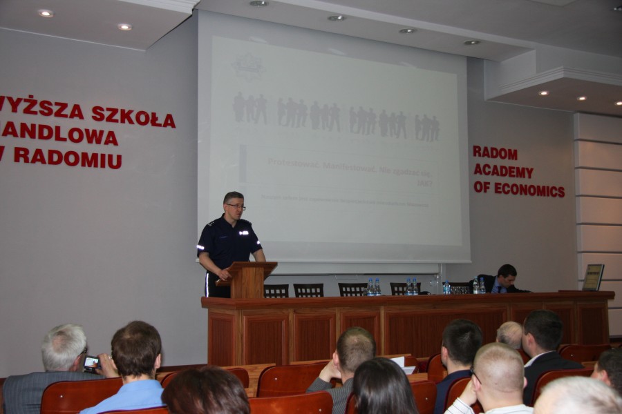 Prelekcję wprowadzającą do debaty wygłosił właśnie komendant policji. Podkreślił, że policja nie wyznacza granic dla chcących wyrażać swoje poglądy - czyni to ustanowione prawo. Jednak zaznaczył, że funkcjonariusze dbając o przestrzeganie tego prawa czynią to w pełnym poszanowaniu wolności obywatelskich i praw człowieka. Co do organizacji imprez i zgromadzeń rolą policji jest przede wszystkim pomóc obywatelom, aby zrealizowali swoje przedsięwzięcia zgodnie z prawem. Komendant krótko omówił najważniejsze przepisy określające zasady organizowania zgromadzeń i imprez masowych. Zaakcentował ogromne znaczenie współdziałania wszystkich stron zaangażowanych w organizację dużych wydarzeń o charakterze publicznym w fazie ich przygotowań, co pozwala na przewidywanie i możliwie jak najlepsze eliminowanie zagrożeń.