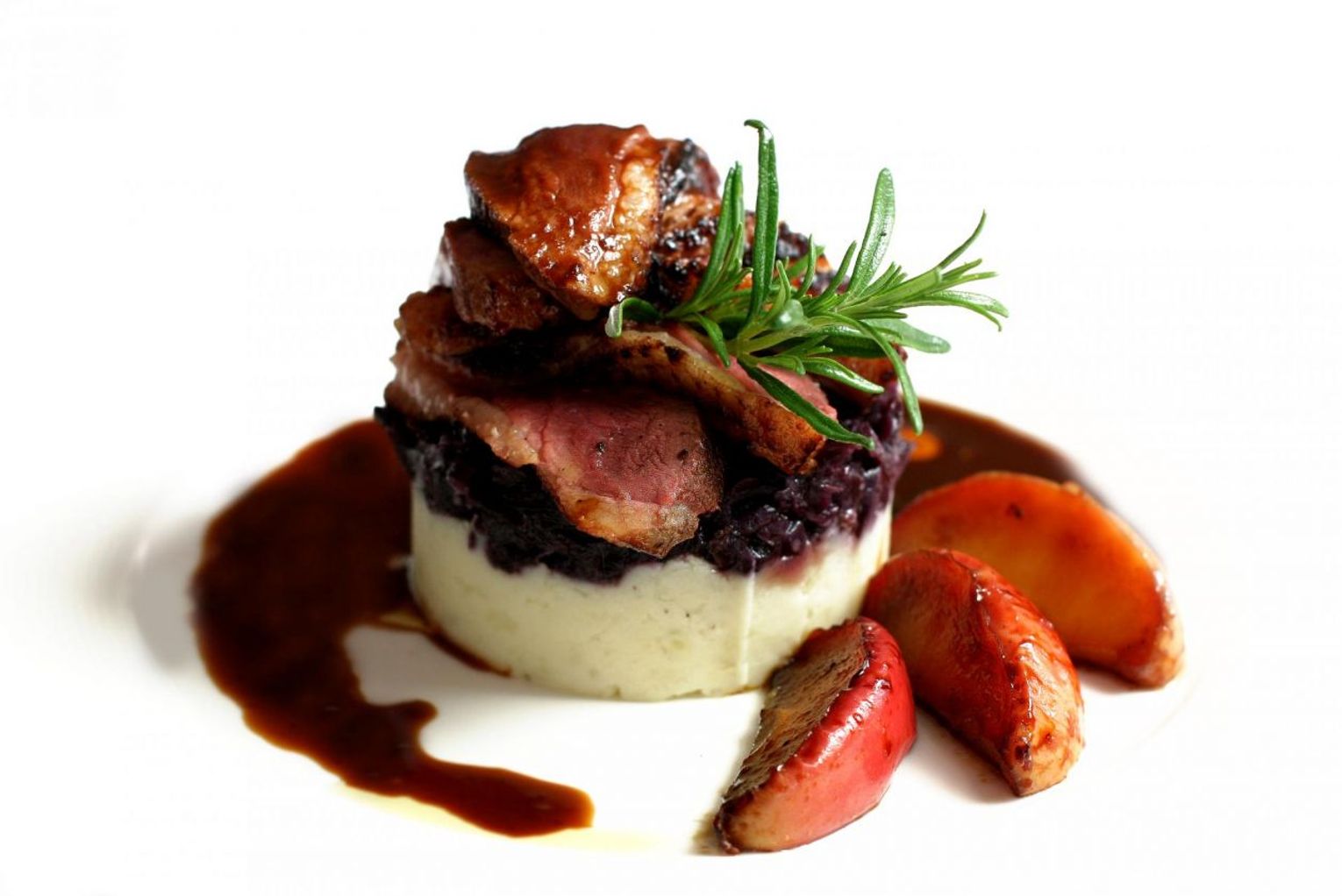 W pałacowej restauracji tradycja łączy się z nowoczesnością, np. dzika kaczka podawana jest z jabłkami1.