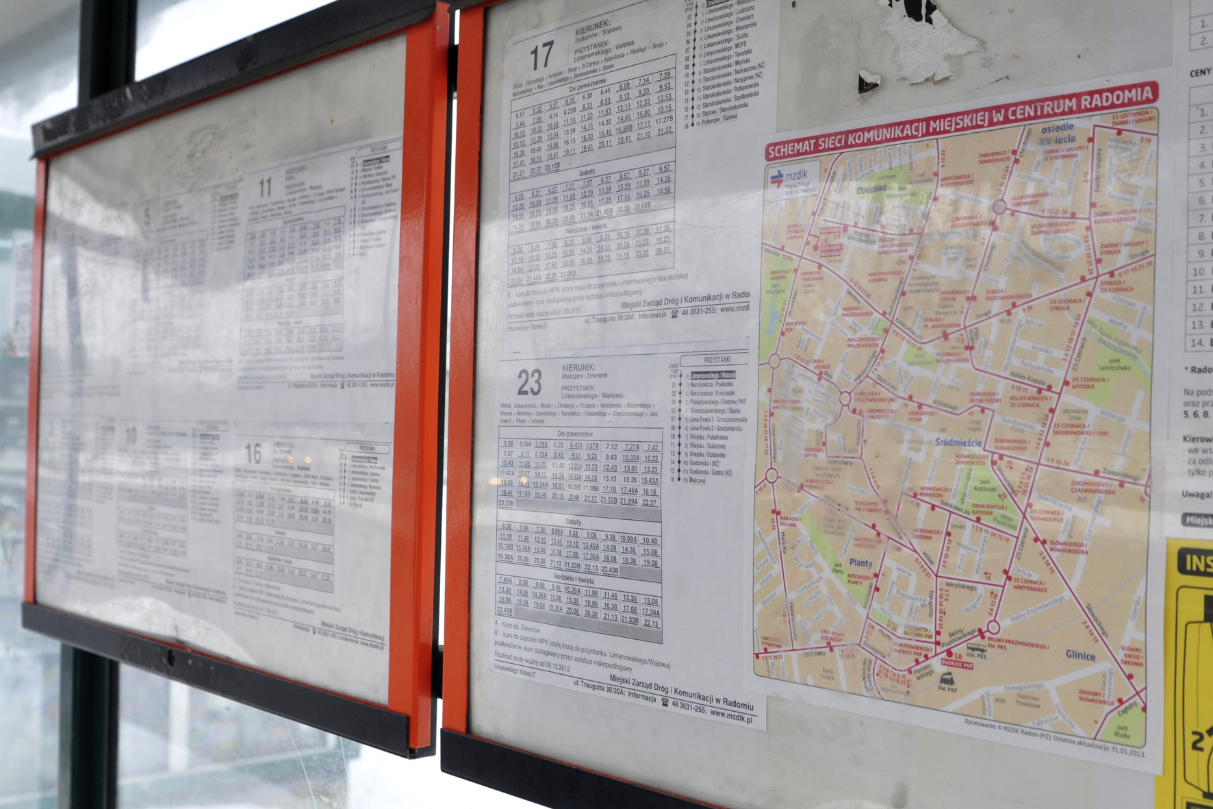 Pasażerowie radomskiej komunikacji miejskiej mają do dyspozycji w sumie 25 linii autobusowych. Większość rodowitych radomian nie zna dokładnie przebiegu tras wszystkich linii, przyjezdni mają z tym zdecydowanie większy problem. Dlatego na przystankach pojawiły się pierwsze mapki z wyznaczonymi trasami autobusów miejskich. Informacje te są niewielkie i obejmują tylko obszar Śródmieścia.