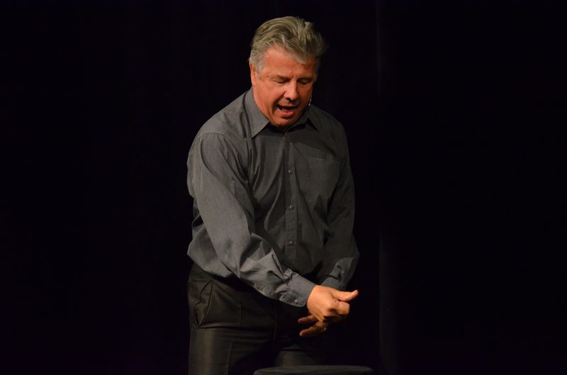 Emilian Kamiński przez cały spektakl podtrzymywał kontakt z publicznością, zadając adekwatne pytania do danego wątku sztuki. Prowadził dialog, wcielając się zarówno w swoją żonę Irenę, jak i w kumpla. A te dialogi w subtelny sposób ośmieszały relacje kobiet i mężczyzn i zarazem ukazywały ich odmienne spojrzenie na rzeczywistość: „Misiu, możesz to sobie wyobrazić w naszej sypialni? -Mogę Irenko, ale moja wyobraźnia tyle nie zarabia.”