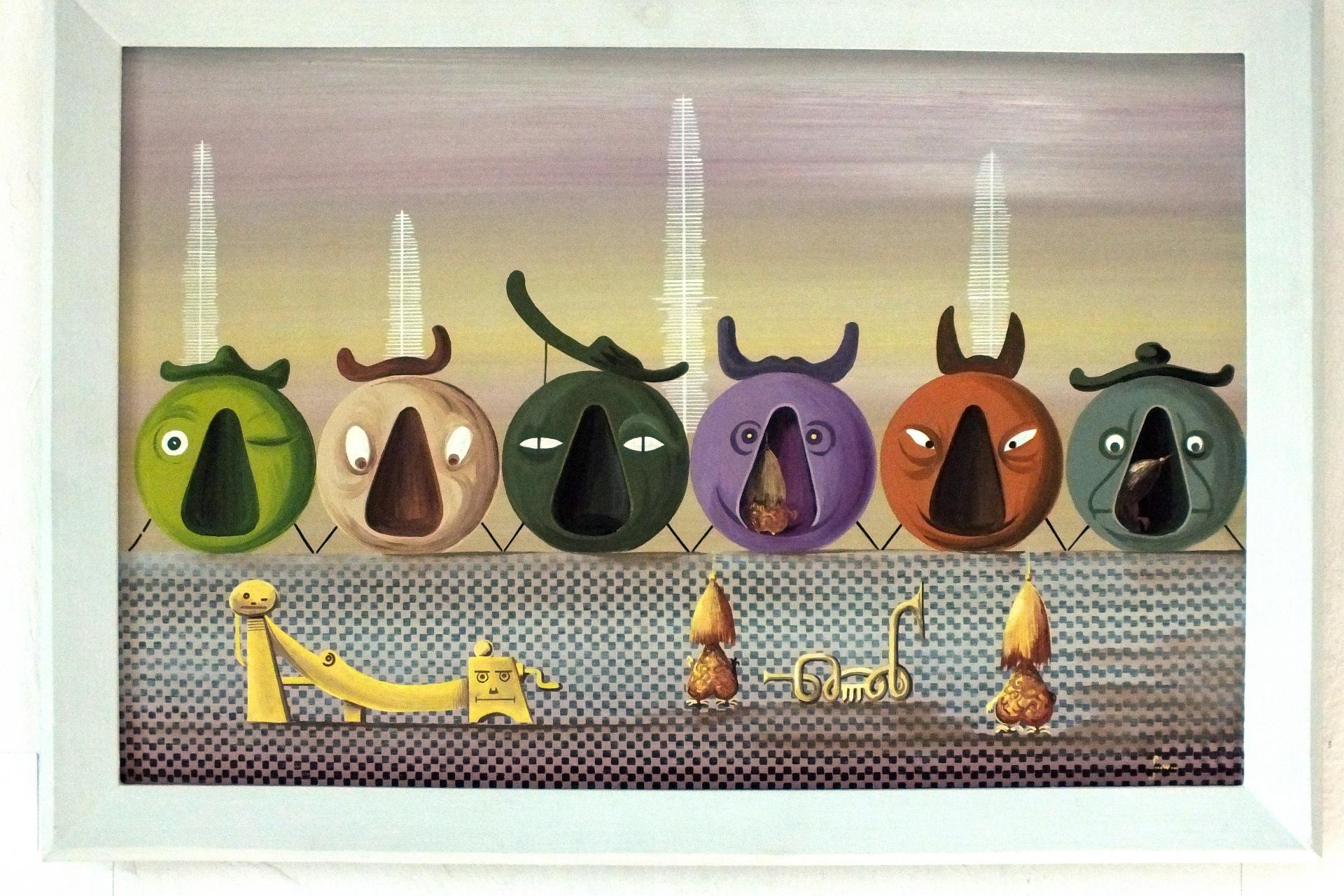 Na wystawie zobaczymy prace tzw. naiwnych, czyli malarstwo prymitywistów, analfabetów, niepełnosprawnych intelektualnie, wyeliminowanych społecznie – Nikifora (Epifana Drowniaka), Ludwika Więcka, Marianny Wiśnios czy Katarzyny Gawłowej. Zupełnie inny krąg doznań wywołany chorobami psychicznymi określa twórczość tzw. psychopatologiczna Edmunda Monsiela, Władysława Sułowskiego, Ryszarda Koska i Władysława Wałęgi. Osobna część ekspozycyjna została przewidziana na prace tzw. śląskich wizjonerów, czyli zafascynowanego okultyzmem Teofila Ciepki i Erwina Sówki czy zauroczonego karbonem – Ludwika Holesza. Niektórzy, jak Jarosław Miklasiewicz, świadomie inspirowali się malarstwem Hieronima Bosha i Pietera Bruegela. Inni - jak Krzysztof Okoń, z wykształcenia polonista czy Adam Słowiński (wiolonczelista, absolwent Akademii Muzycznej w Krakowie) - pozostawali pod silnym wpływem twórczości ludowej na szkle. Sporą grupę tworzą obrazy malarzy wyjątkowo utalentowanych, dla których malarstwo stało się życiową pasją, wielu odnalazło w nim sens życia – Iwańska, Szefler, Płonkowa, Korsak, Walicka, Surowiak, Kutkowski, Rząb. Wszystkich połączył „talent, pasja, intuicja…”.
