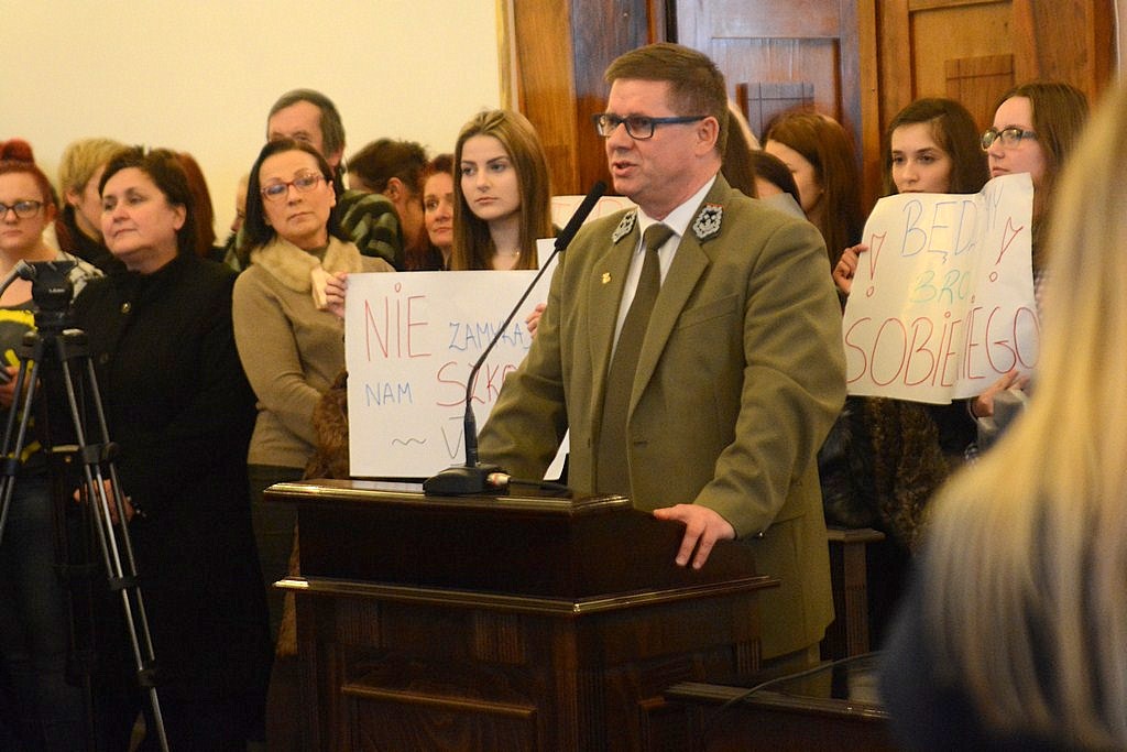 Wnioskodawcą zwołania nadzwyczajnej sesji był Marek Szary, przewodniczący klubu radnych Prawa i Sprawiedliwości. - Na wstępie proszę o schowanie tych transparentów - powiedział Szary do młodzieży, która przy drzwiach sali stała trzymając kartki z napisami "Stop likwidacji Sobieskiego". - Zrobiono z nas i z państwa zadymiarzy. Chciałbym, żeby ta sesja, to był czas, w którym ci, którzy nie mieli szansy przedstawić swoich argumentów, teraz ją dostali.