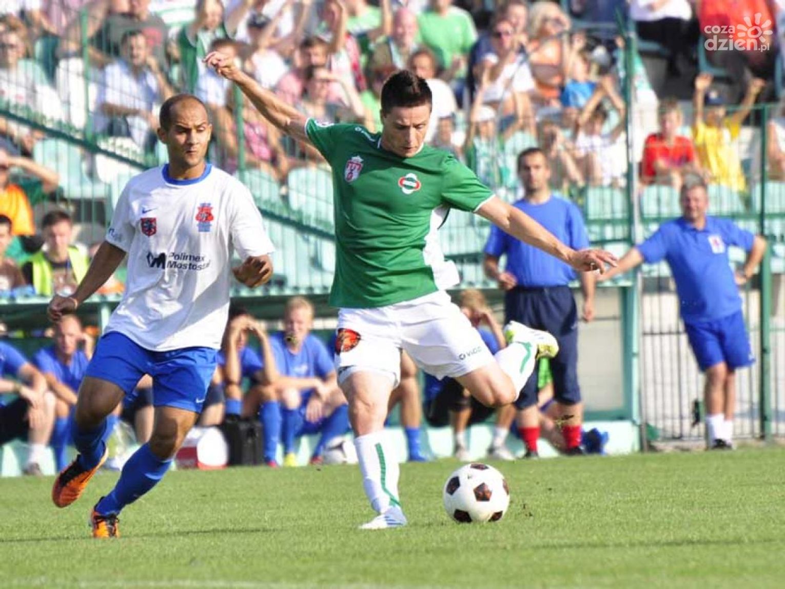 15' Kaliszewski dośrodkowuje w polu karnym na głowie Marcina Figla - minimalnie obok słupka!