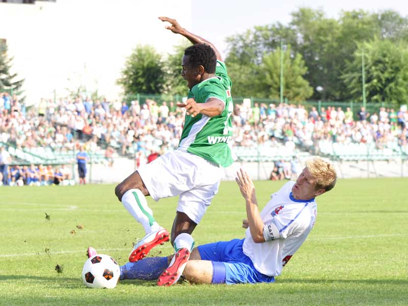 66' Odunka prawym skrzydłem. Faulowany przez Damiana Guzka. Żółta kartka dla zawodnika Pogoni.