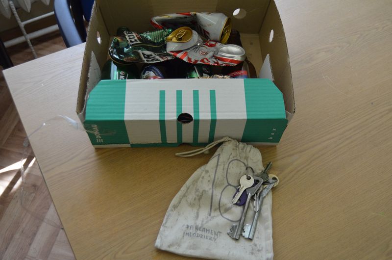Idźmy dalej. W głównym pokoju co prawda zachowany jest względny porządek, jednak naszej uwadze nie umknął karton z pustymi puszkami po piwie. Czy tak właśnie członkowie Parlamentu Młodzieży Miasta Radomia umilają sobie wakacyjne posiedzenia? A dodajmy, że przed naszą wizytą marszałek parlamentu Mateusz Wojcieszak zdążył co nieco uprzątnąć bałagan po urzędujących tam wcześniej posłach.
