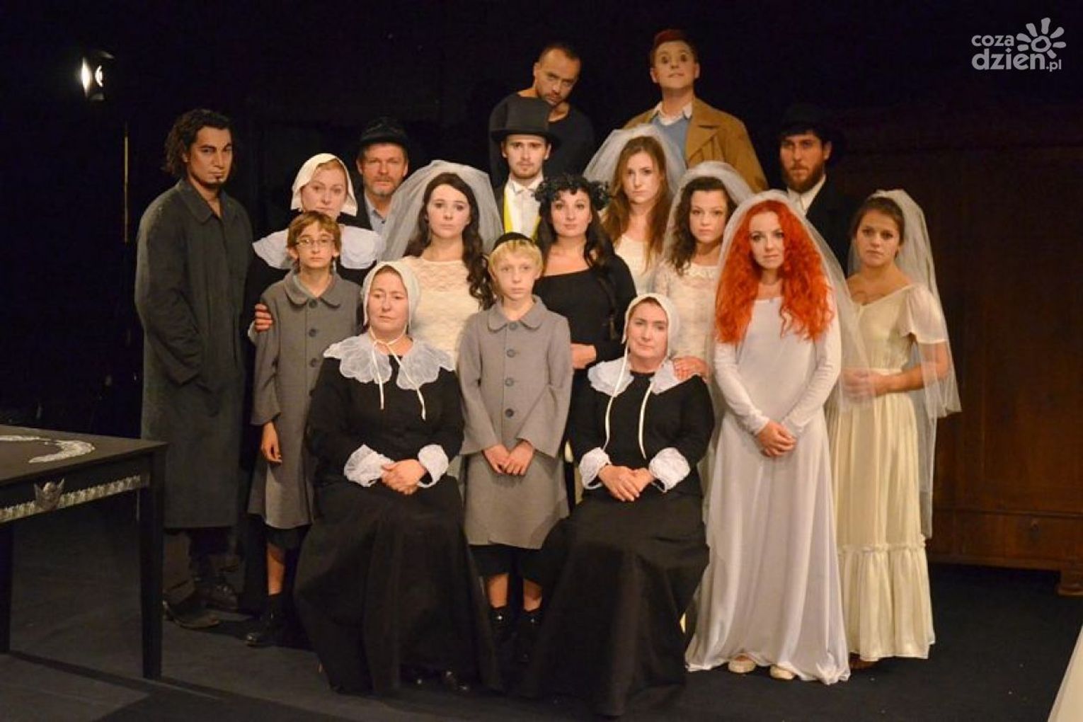 Nasze wyobrażenia o świecie zmarłych są takie skąpe, ciężko nam zrozumieć, co się dzieje, gdy serce przestaje bić i zatrzymuje się mózg. Dzięki spektaklowi mamy szansę spojrzeć na żywych zza grobu. Jest bardzo dziwnie. Na początku wygląda całkiem przyjemnie i obiecująco. Panny młode w białych welonach obserwują się z zaciekawieniem. Biały welon, przedślubna ekscytacja, obietnica życia we dwoje. Powinno to nam się kojarzyć z czymś przyjemnym, być zapowiedzią nowego i świeżego. Życia przepełnionego szczęściem, namiętnością, wzajemnością i miłością. Czekamy na to, kierując się jeszcze swoją ziemską żywą logiką, ale coś jest nie tak. Jesteśmy świadkami czegoś zupełnie innego. Słuchamy kilkunastu odrębnych historii, opowiedzianych tajemniczym i trudnym językiem.