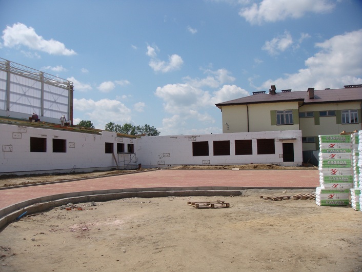 Jej budowę rozpoczęto w grudniu 2011 roku. Obecnie stoi już szkielet budowli. Budynek będzie składał się z hali głównej oraz jednokondygnacyjnego zaplecza, gdzie zaplanowano zespoły rozbieralni i umywalni, szatnię ogólną, szatnie dla nauczycieli, pokój biurowy z aneksem pierwszej pomocy, magazyny, hall oraz pomieszczenie porządkowe. Budynek będzie posiadał dodatkowo dwie sale dydaktyczne. Sama hala sportowa posiadać będzie możliwość zainstalowania czterech rzędów miejsc rozsuwanych (około 200 siedzisk) dla widzów.