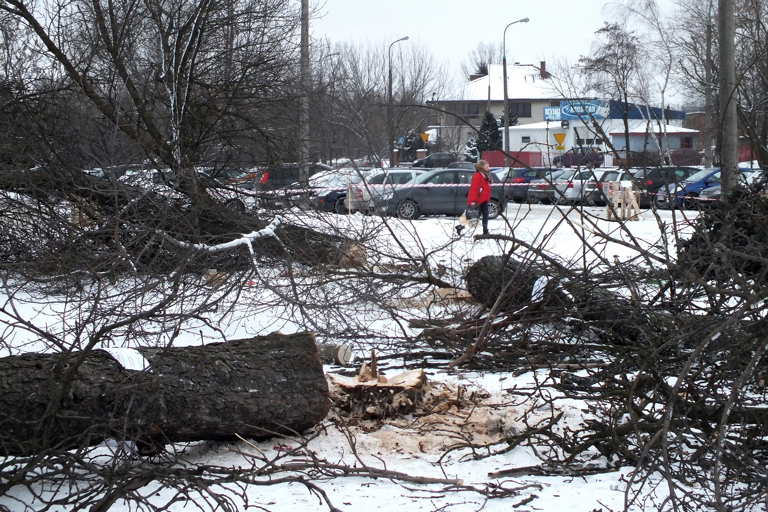 W środę, 8 lutego rozpoczęła się wycinka drzew. Jak poinformował nas czytelnik zaniepokojony zmianami, przestrzeń ta służyła jako parking, z którego „korzystają zarówno mieszkańcy, jak i osoby dojeżdżając busami do pracy do Warszawy”.